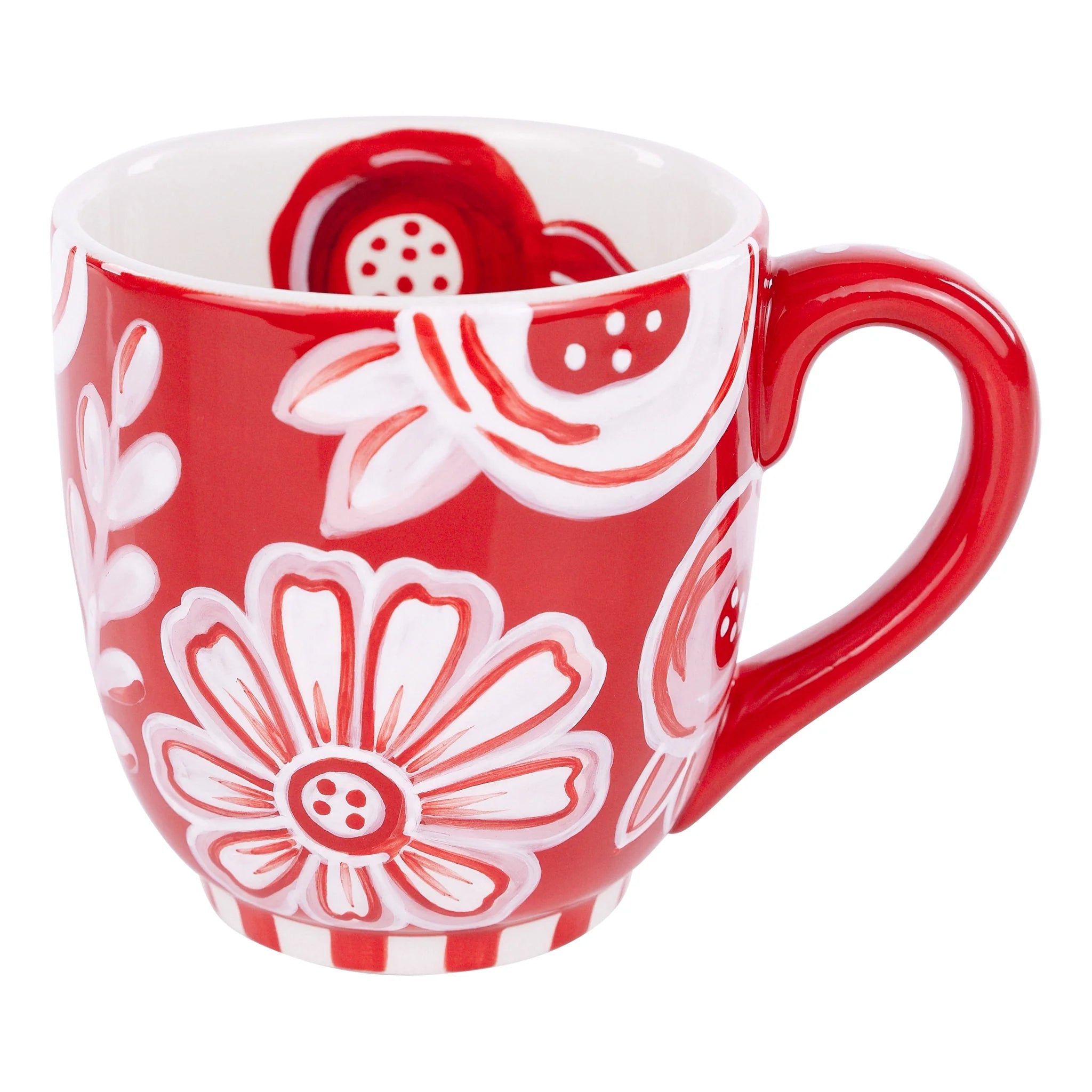 Add a touch of charm to your daily routine with this stunning red mug, adorned with delicate floral details. Perfect for sipping coffee, tea, or your favorite beverage, this beautifully designed mug brings elegance and warmth to every moment. A wonderful gift for a loved one or a lovely addition to your own collection, this floral mug is both stylish and functional, making every sip feel extra special.