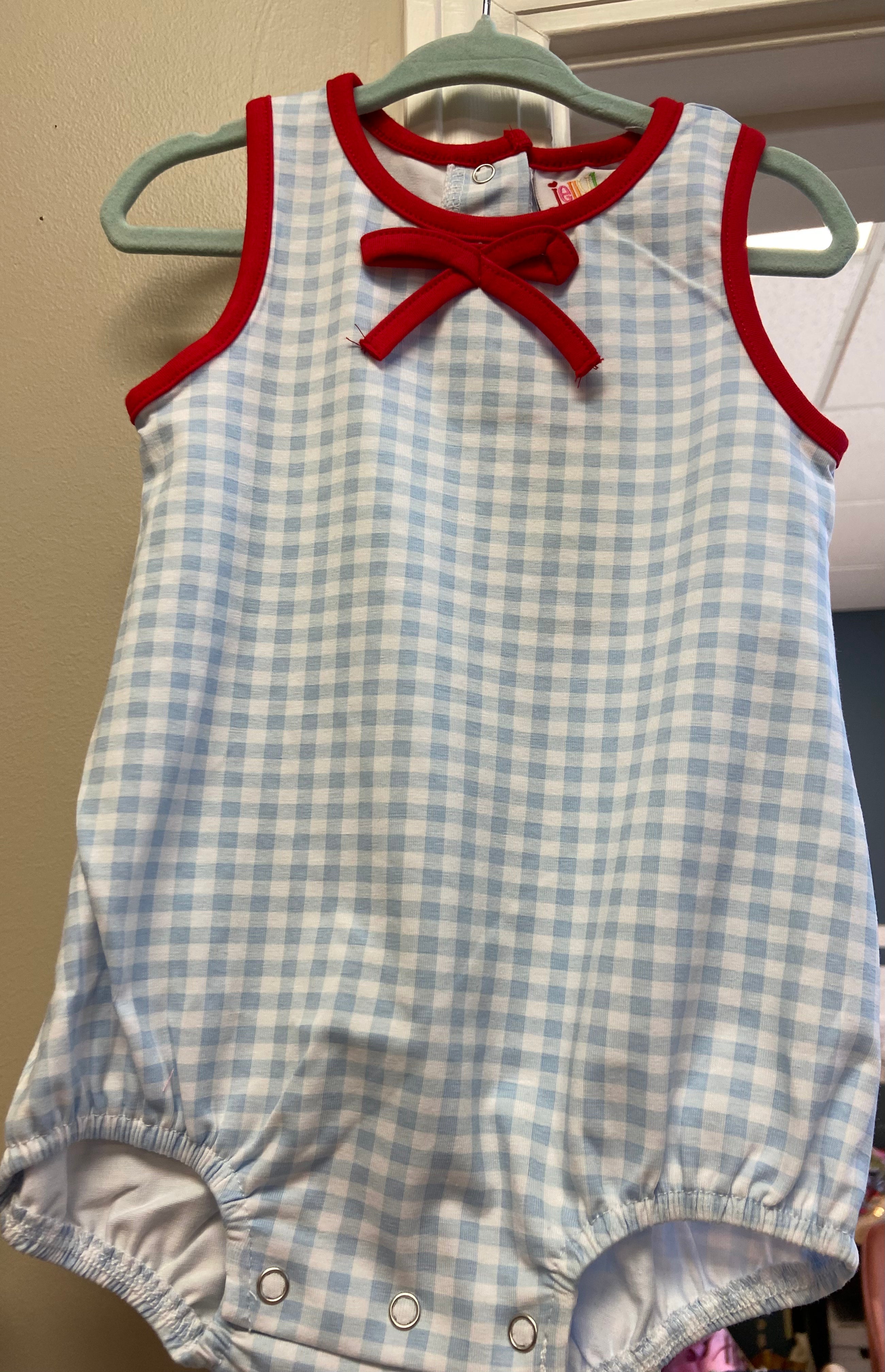 Jellybean Blue Gingham/Red Bow Bloomer Set