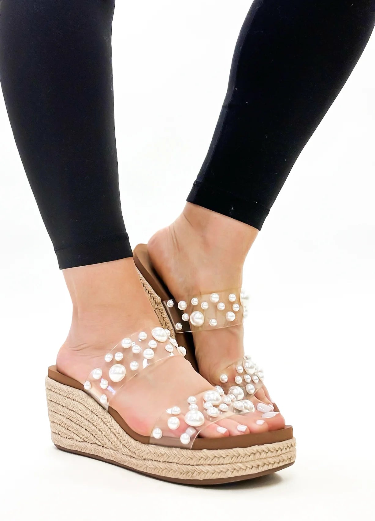 Get ready for summer with these Corky's Clear She's Here Sandals! These stylish sandals feature a comfortable slide in wedge and braided covered cork for a chic look. The clear strap details are adorned with pearls, adding a touch of elegance. And with Corky's famous foam footbed, your feet will feel pampered all day long!