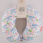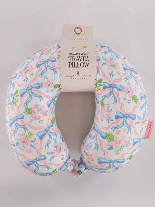 Travel in comfort with this ultra plush Ribbon Print memory foam travel pillow. Includes snap to secure around your neck or your luggage, and removable printed cover.