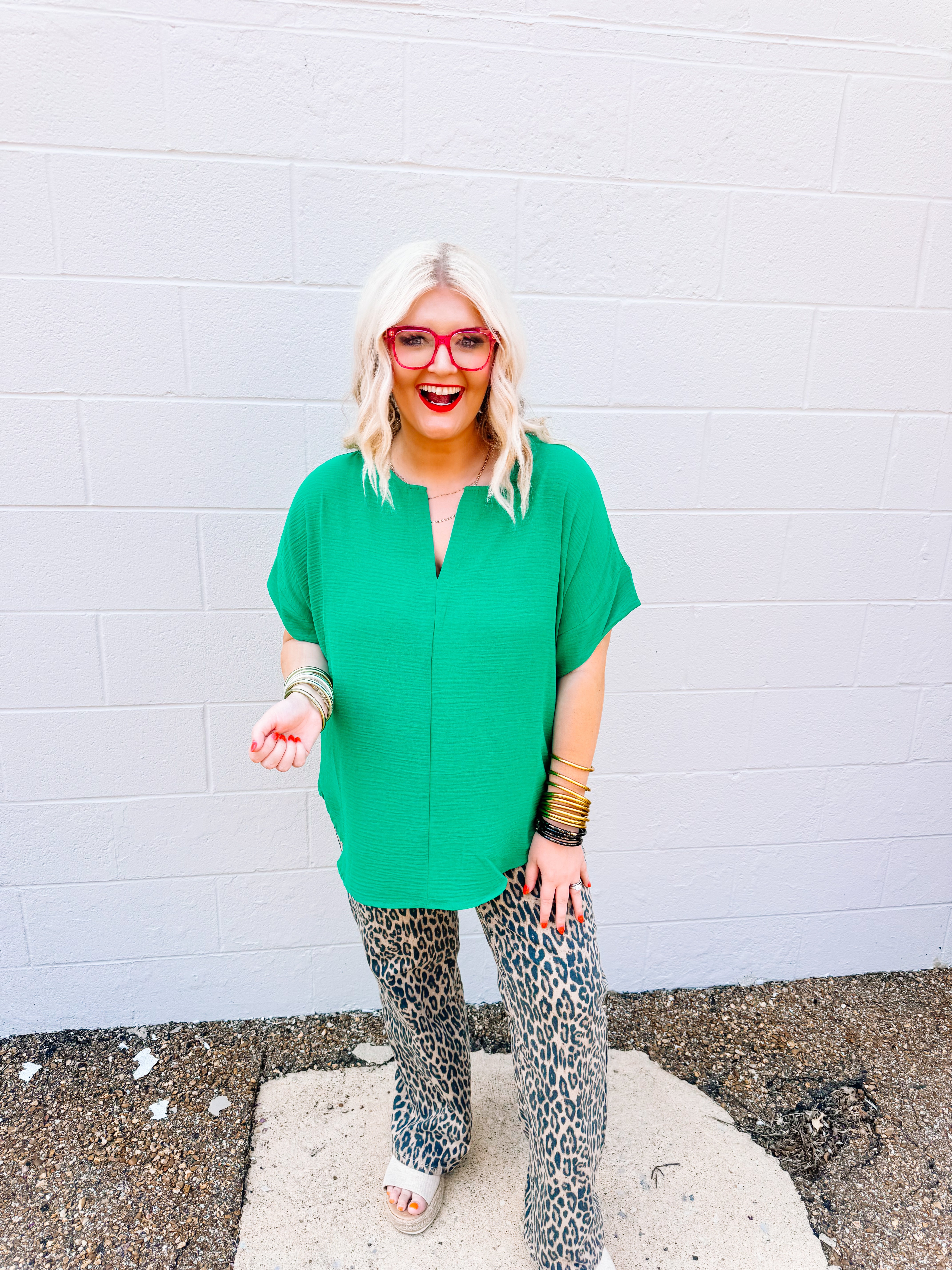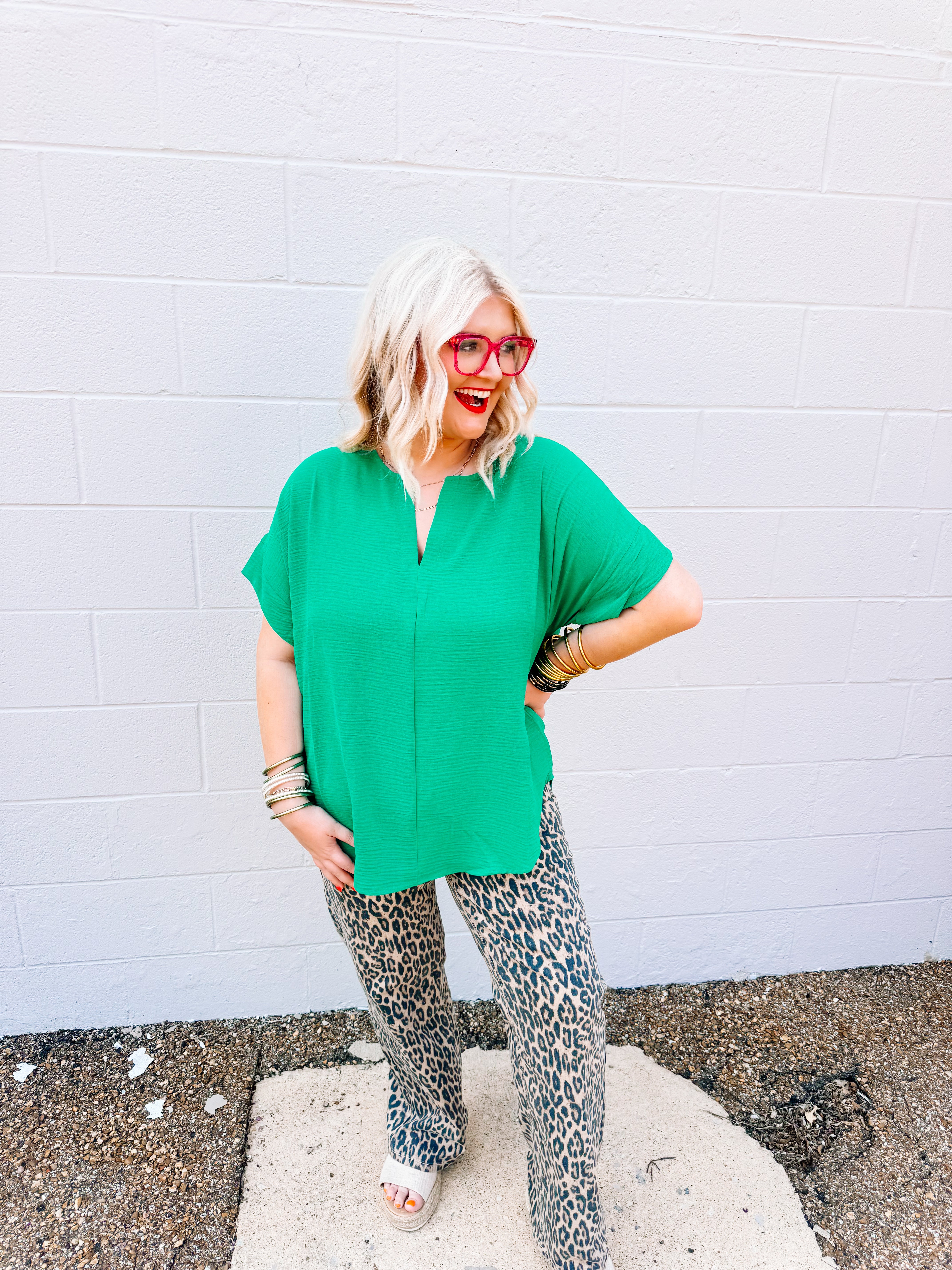 The Zenana Airflow Top in Kelly Green offers a comfortable fit with its plus-size woven fabric designed for breathability. Featuring a split neck and short sleeves, this top combines style and ventilation, making it ideal for warm days or layering. Its tailored cut ensures a flattering silhouette while maintaining ease of movement. Perfect for those seeking both comfort and a polished look in their wardrobe.