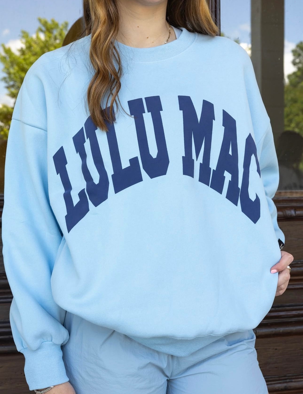 LULU MAC: Light Blue/Navy Logo Puff Crew (Oversized Style)