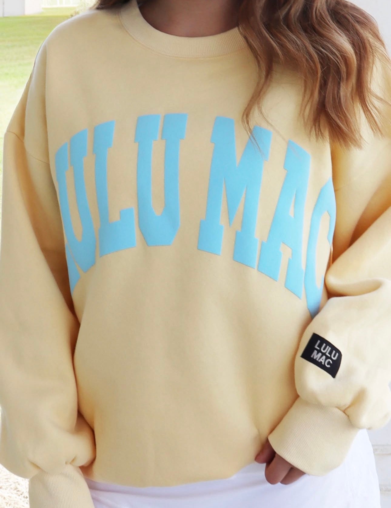 LULU MAC: Butter/Teal Logo Puff Crew (Oversized Style)