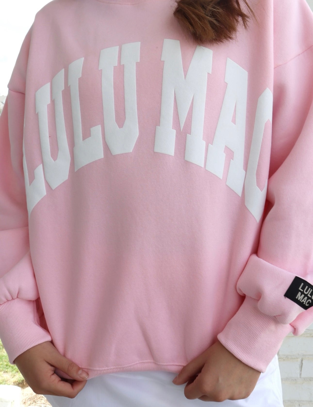 LULU MAC: Light Pink/White Logo Puff Crew (Oversized Style)