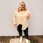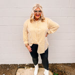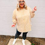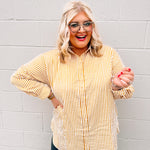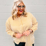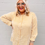 A beautiful and classy top to wear this holiday season. We love this top for all the versatile pieces and this top features; a Stripe collared button up long sleeve oversized top featuring hi-low detail at hem. Unlined. Woven. Non-sheer. Lightweight.