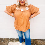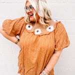 A beautiful Boho Floral blouse with the prettiest detailing. These fall tones are perfect for the Holiday season and they can also be carried into the Spring season. Our Boho Days top features, a Floral print long sleeve button up top featuring babydoll collar. Self-tie detail at neckline. Smocked cuffs. Unlined. Woven. Non-sheer. Lightweight.