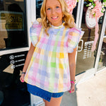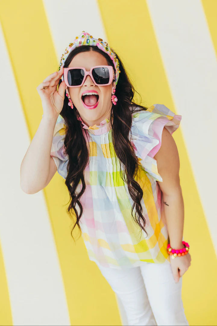 Brianna Cannon Multicolor Gingham Ruffle Blouse