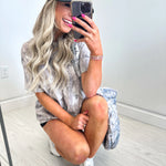model is 5’6”, size small, 3 in bottoms and wearing a size small in the tee.