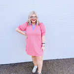 Welcome to the Hold My Hand Dress! This coral dress is great for everyday wear. It is made for the girl who loves her comfy casual style - especially for running errands or just for a girls day out.