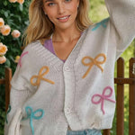 The bow trend isn't going anywhere and we are loving the fun colors in this cute little cardigan! Pastels are perfect for Spring and the chilly mornings that are happening will make you want a cute cardigan to throw up!