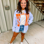 Crafted from a soft Gildan sweatshirt fabric, the TN Cardigan combines comfort with classic style. Its gray base is accented by bold orange lettering, reflecting Tennessee pride with subtle sophistication. Ideal for layering, this cardigan offers warmth and durability, making it a versatile addition to your wardrobe for both casual and spirited occasions.