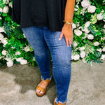 82491 REGULAR/PLUS BLUE SKINNY SHARK BITE HEM JEANS