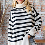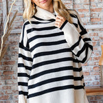 A Classic Christmas is something we love but a classic Christmas look is something we hope for. Trust us when we say to let us plan your outfit. Our Classic Christmas Sweaters are perfect with so many things and it is going to be a great asset to add to your closet. This top comes in red and black and features: a RELAXED FIT STRIPED KNITTED SWEATER FEATURING TURTLENECK, DROP SHOULDER RIBBED CUFF LONG SLEEVES, AND RIBBED HEMLINE WITH SIDE SLITS.