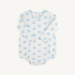 Introducing our newest style for fall, the Long Sleeve Patton Play Romper! We took his favorite bubble and made it a little warmer for the cooler months. Featuring our Vintage Prep Pumpkin Pails with Buckhead Blue, he'll want to wear this bubble all the time!