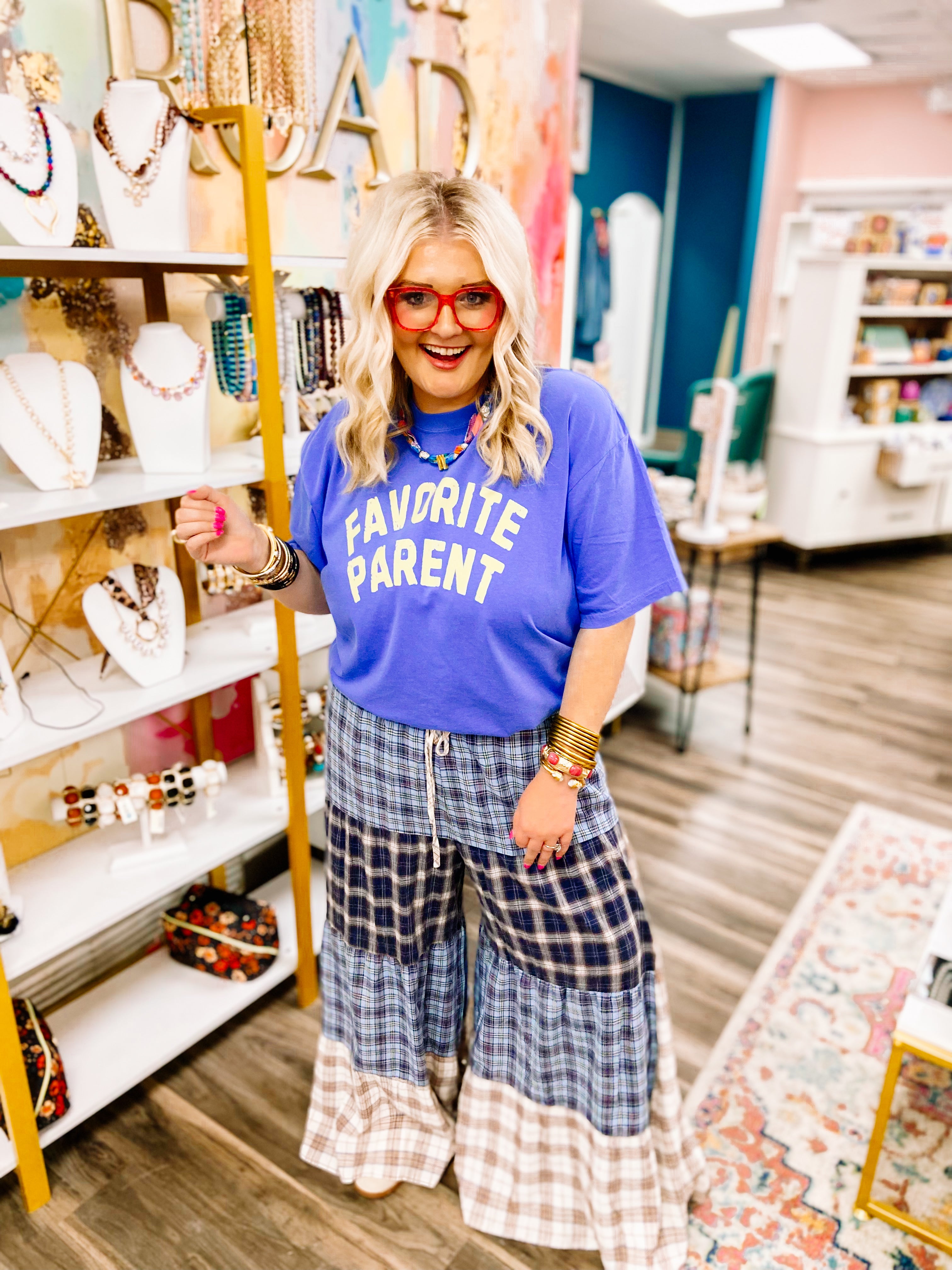 Celebrate parenthood in effortless style with this Favorite Parent Tee. Crafted from Comfort Colors fabric, this light blue short-sleeve shirt delivers the perfect blend of softness and durability for everyday wear. The faded yellow "Favorite Parent" graphic adds a playful, vintage-inspired touch that speaks to your parenting pride. Relaxed fit and breathable material make it ideal for busy days, whether you're running errands or spending time with family.