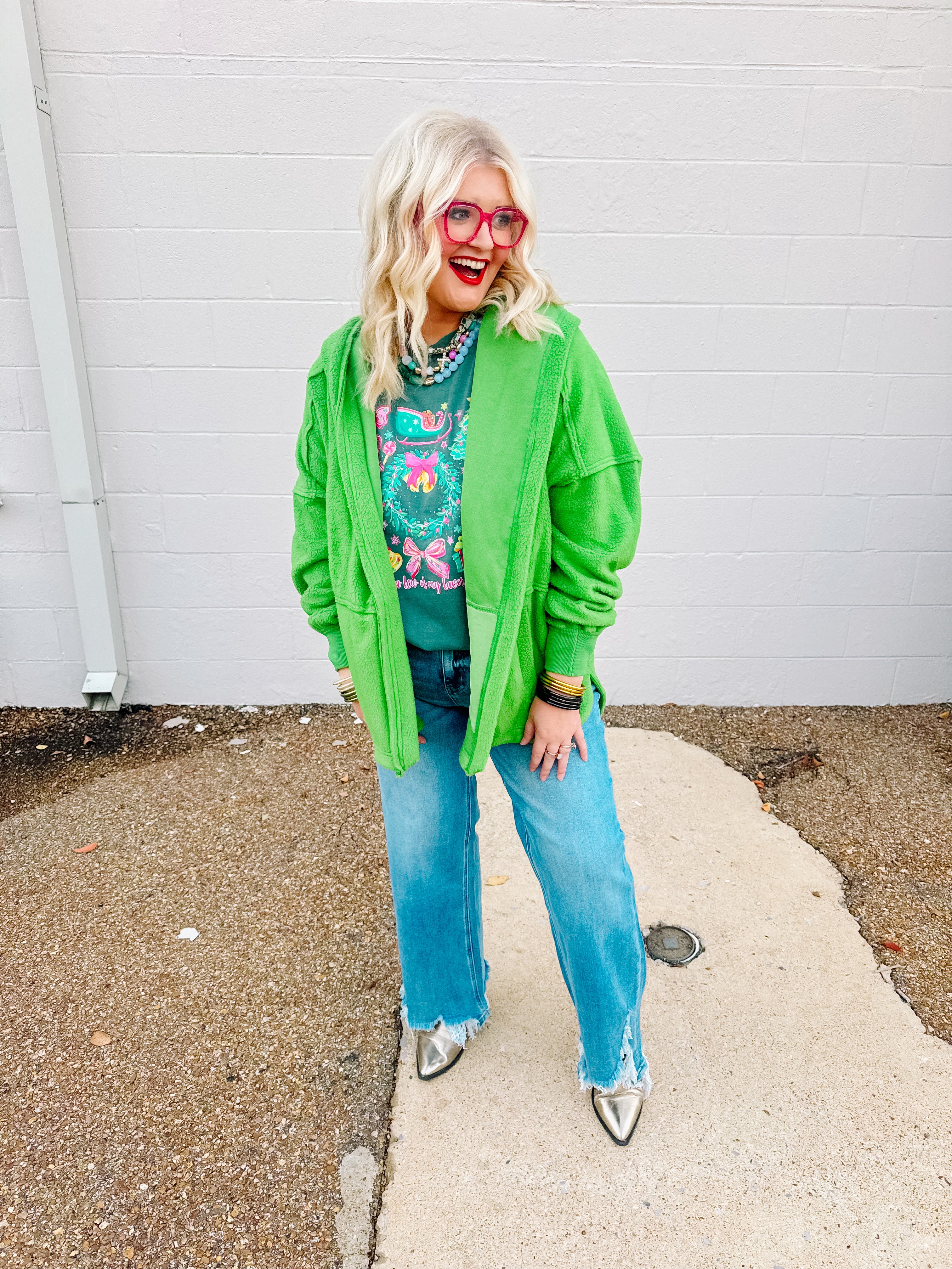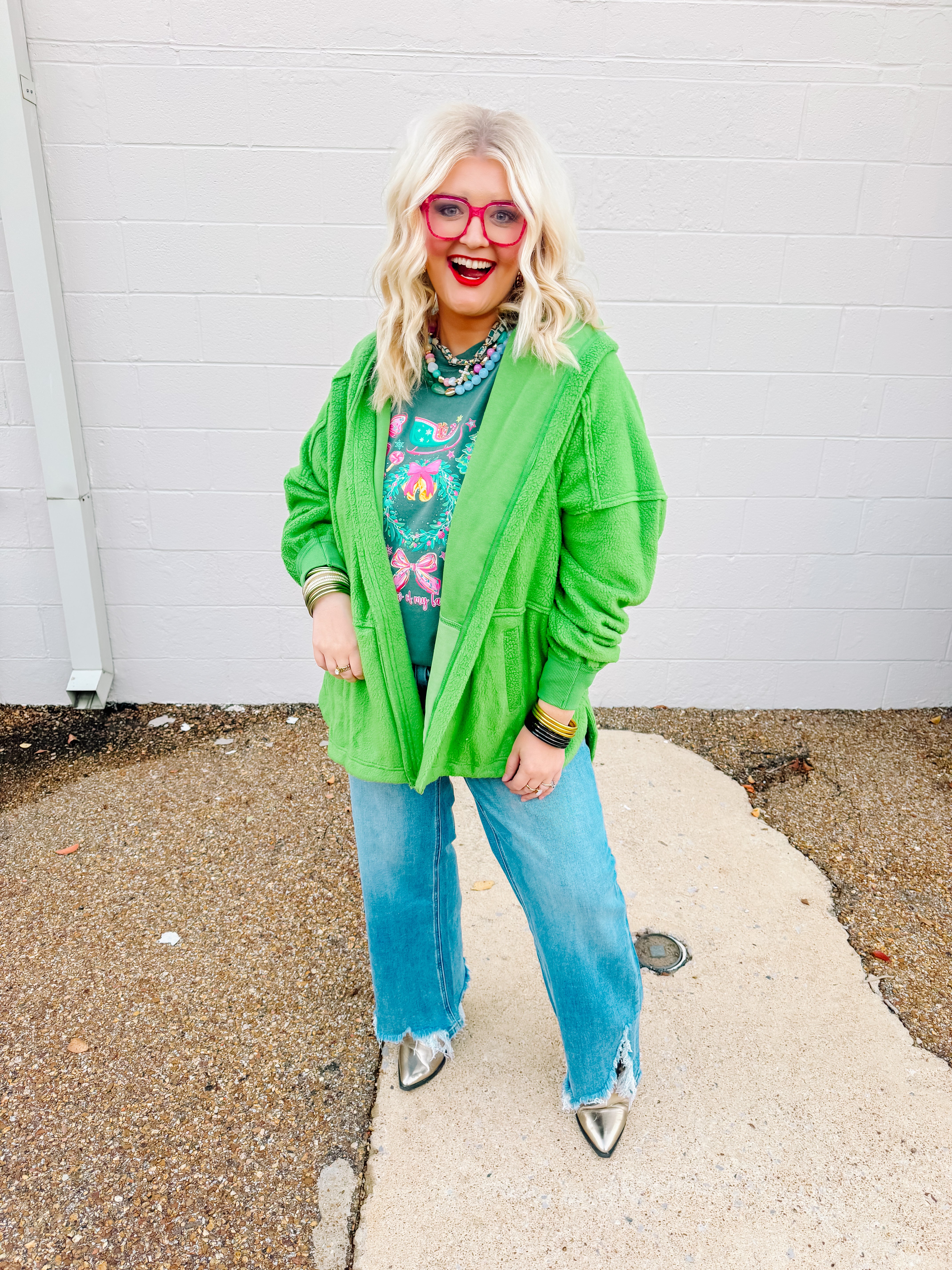 Wrap yourself in luxurious comfort with the Carole Christian Cozy Sherpa Hoodie in rich green. This oversized silhouette features plush sherpa lining that delivers exceptional warmth without bulk, while long sleeves provide full coverage. Functional front pockets offer convenient storage for essentials. The relaxed fit makes it ideal for layering or wearing solo, whether you're unwinding at home or stepping out for casual errands. A versatile wardrobe staple that combines
