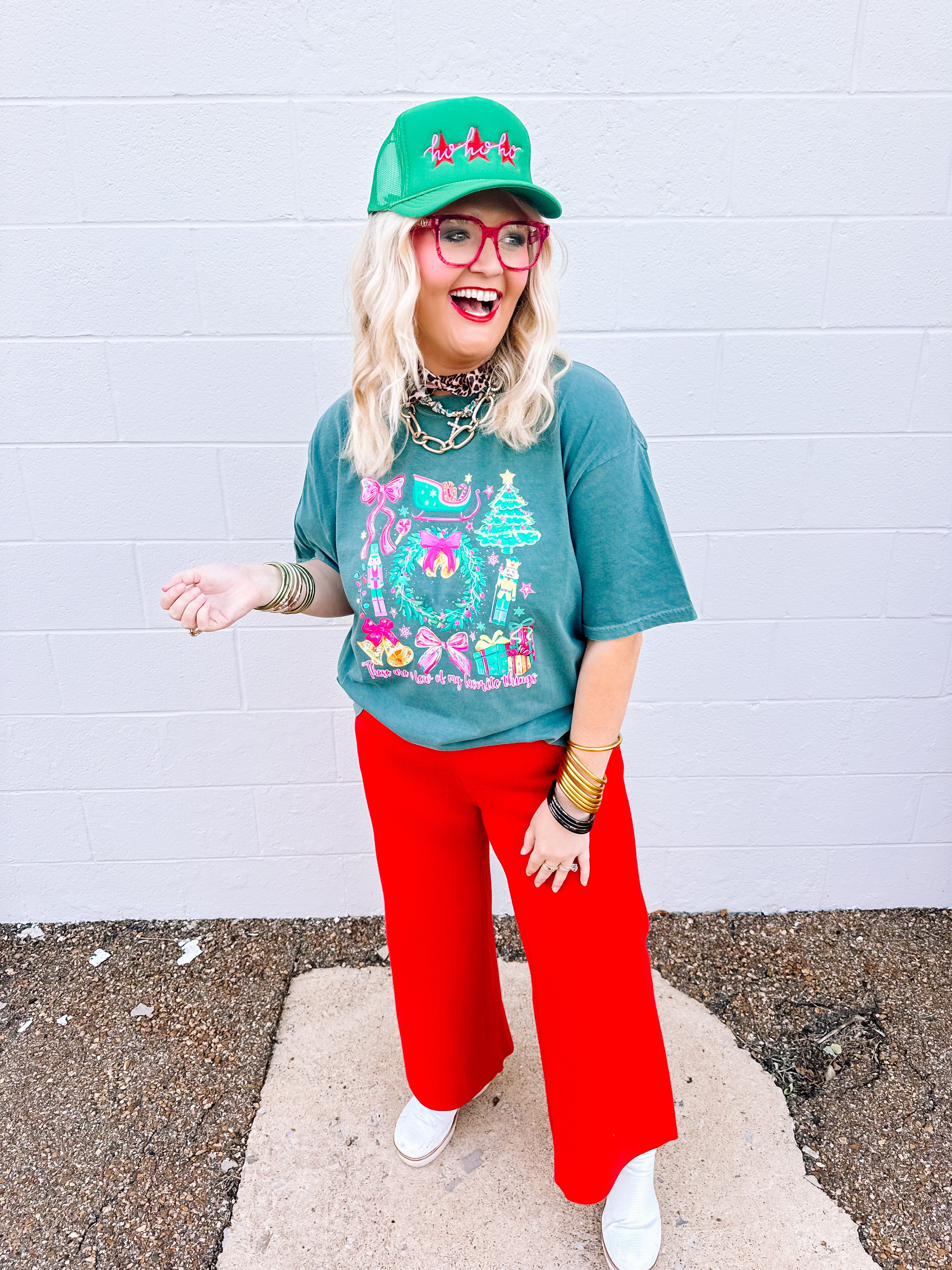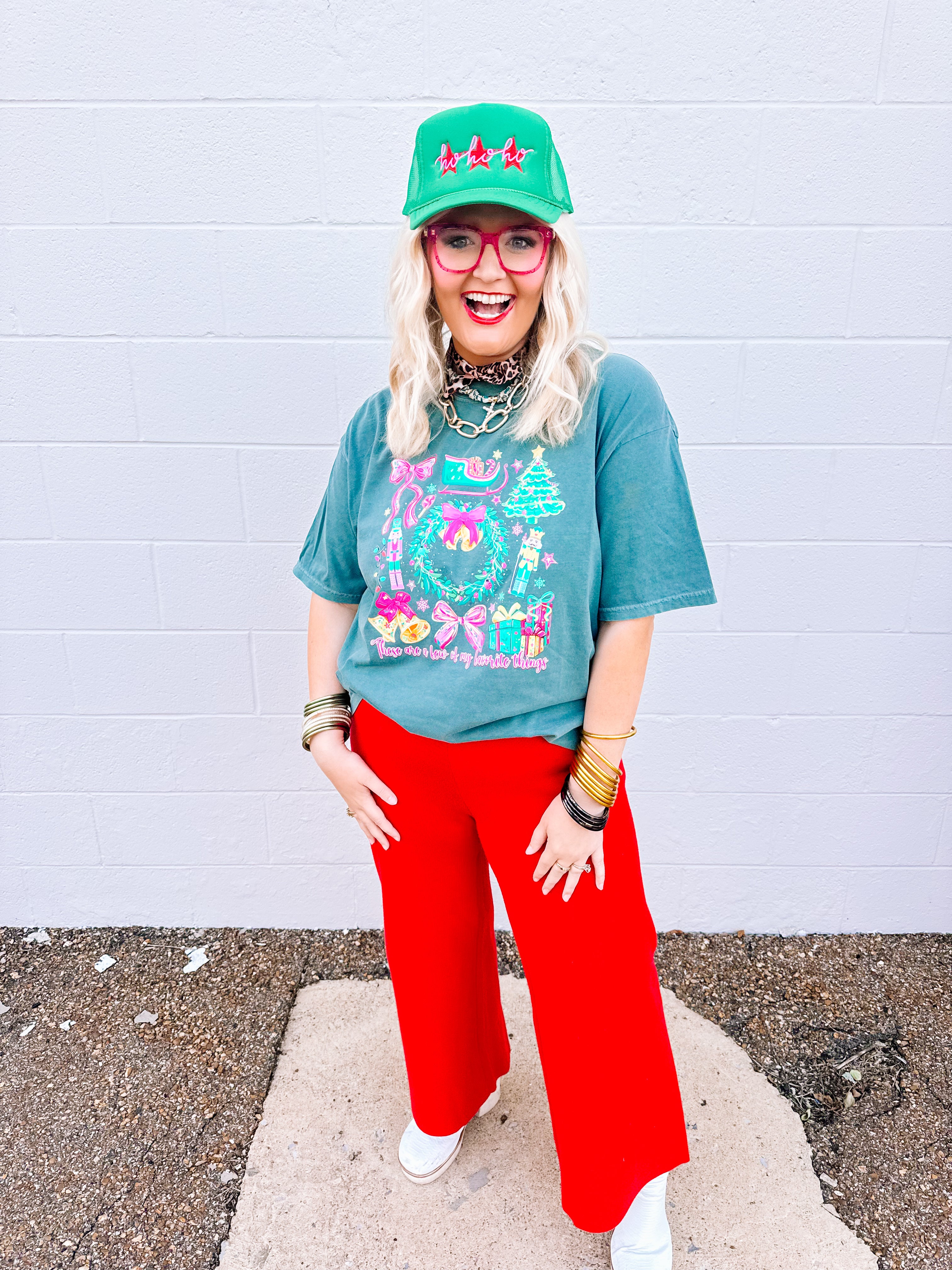 Celebrate the season in vibrant comfort with our oversized "Christmas Favorite Things" collection. Featuring cozy pieces in festive pink and green hues, inspired by the Nutcracker and classic holiday motifs, these colorful essentials bring warmth and joy to your winter wardrobe. Perfect for lounging or festive gatherings, they combine cheerful design with relaxed fit for all-day comfort throughout the holidays.