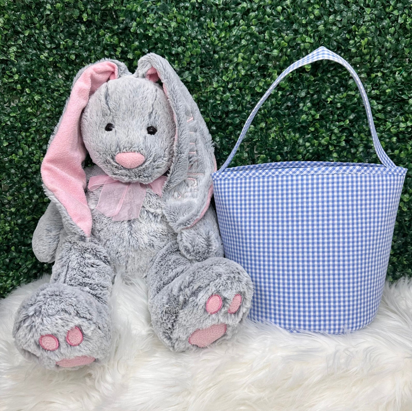 Celebrate Easter with a personalized touch. Our custom Easter baskets feature your choice of design, with monogramming included at no extra cost. This Pink Gingham with Ruffle style offers a charming, classic look perfect for spring festivities.