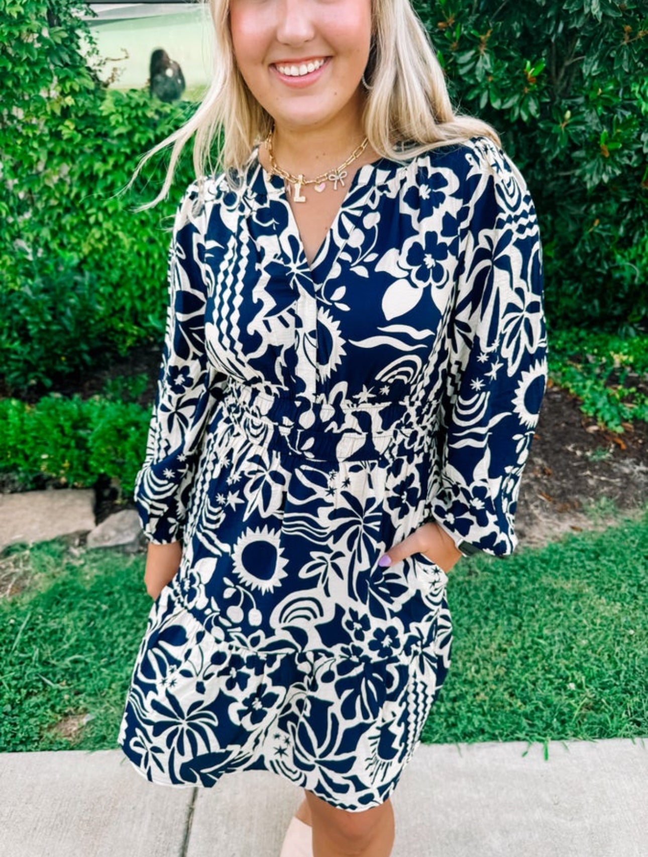 The best dress to look stylish in comes in two amazing colors. The Fall Tropics dress is a printed style that is available in Green and Navy. The dress is a long sleeve with placket detail and elastic at waist. We think this going to be a great dress to wear into all of those fancy evens we may have in life.