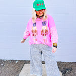 The Fantastic Fawn Pink Nutcracker Top combines festive charm with refined craftsmanship. Featuring intricate sequin detailing on the nutcracker motif and luxurious velvet sequined sleeves, this sweater offers a sophisticated holiday statement piece. Its carefully embroidered design enhances texture and visual appeal, making it an expert choice for elegant seasonal wear.