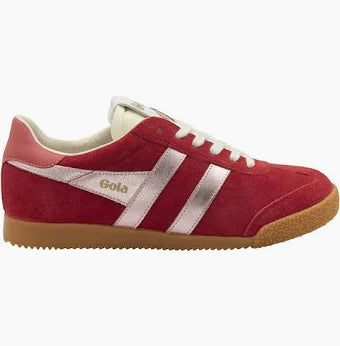 A new addition to the iconic Elan family, Gola Elan Glitz revises the signature Gola wingflash with a dose of soft metallic pink tones to compliment the red suede upper and coral back heel tab. With opulent colour stories taking center stage, enjoy transitioning this classic women’s sneaker from day to night with ease.