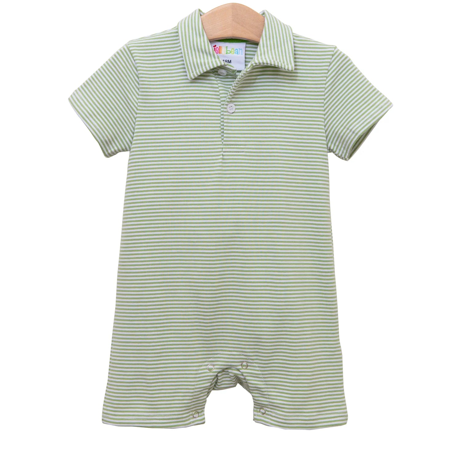 JellyBean Michael Polo Romper- Moss Green Stripe