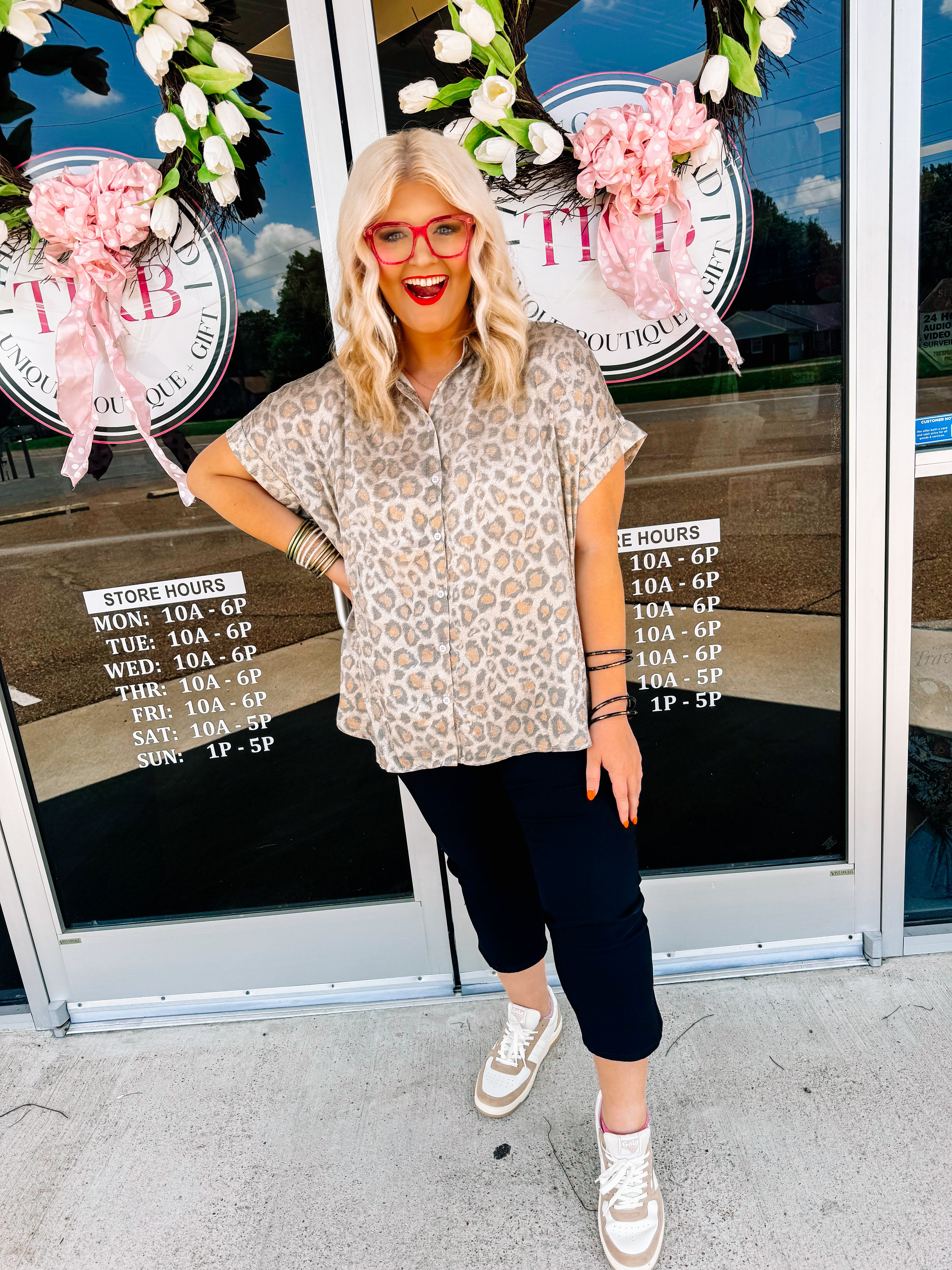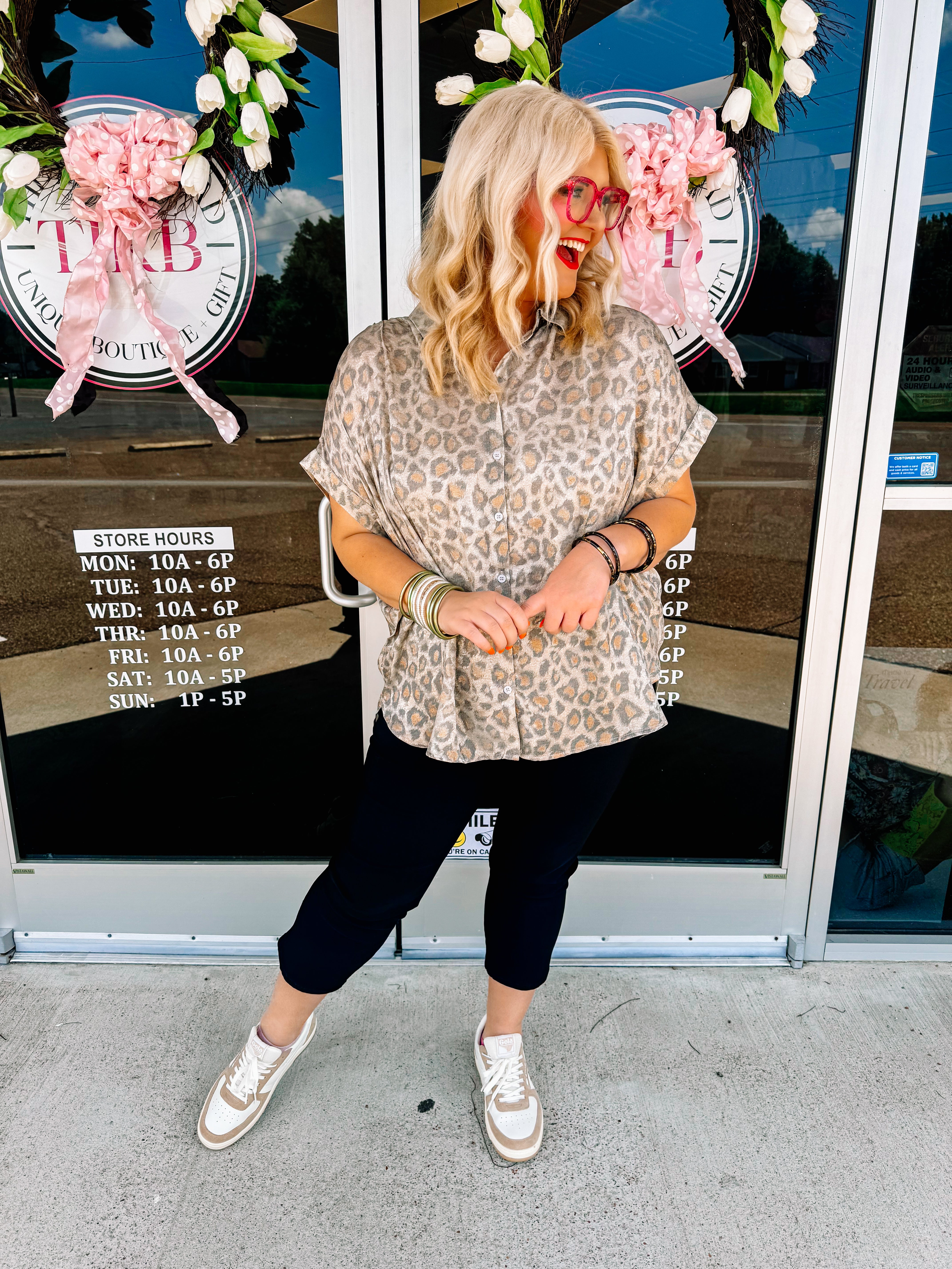 Perfectly tailored and soft to the touch. Unveil timeless style with the leopard top by Jodifl, a beautifully patterned button-up designed in elegant taupe. This lightweight shirt features cuffed short dolman sleeves and ruched shoulders, complete with a collared neckline and button closure for a polished look. Crafted from 100% Polyester, it's perfect for versatile, everyday wear.