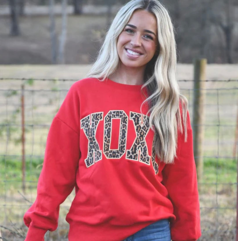 Introducing the LU LU MAC Leopard XOXO Crew. This sweatshirt features an oversized fit and relaxed band for maximum comfort, while staying super trendy and popular. Perfect for adding a touch of style and coziness to any outfit.