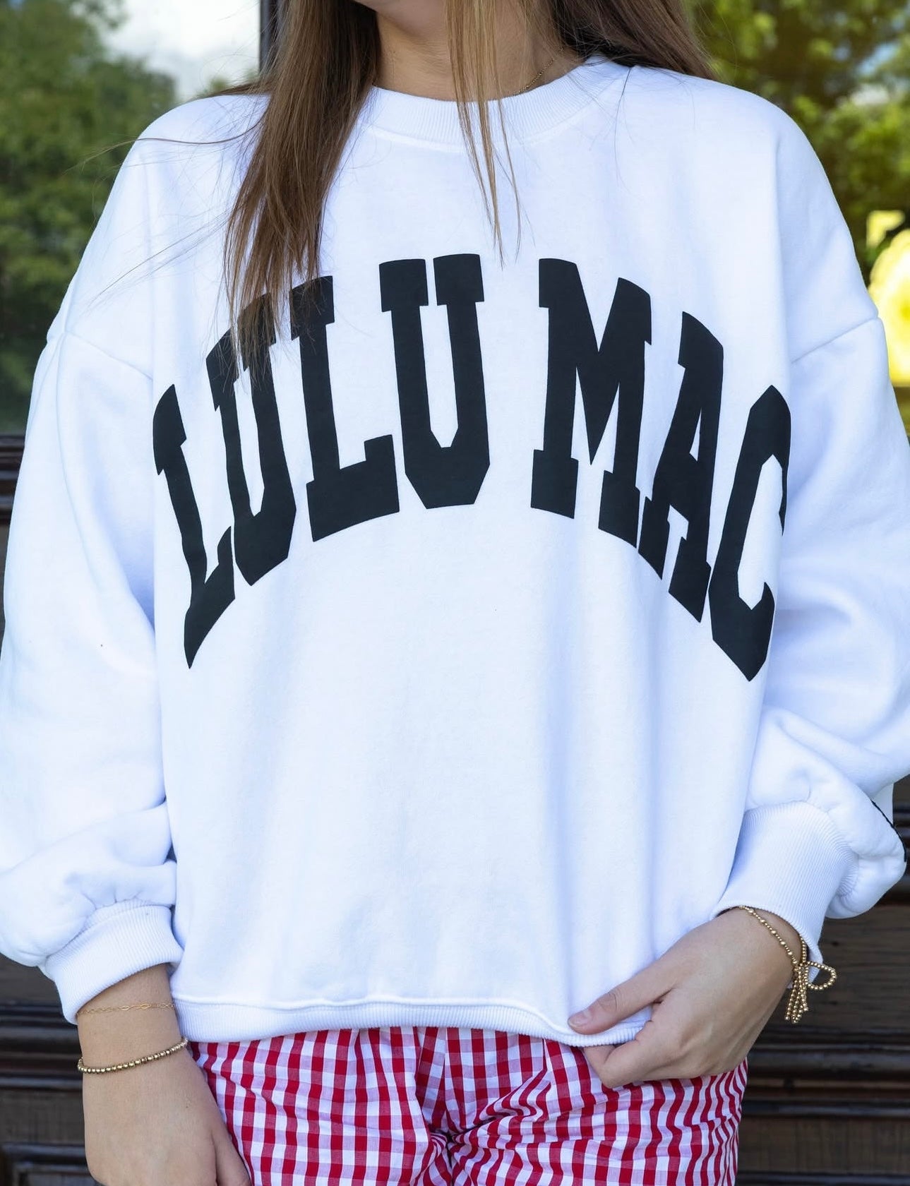 LULU MAC: White Logo Puff Crew (Oversized Style)