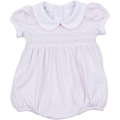 Magnolia Baby Mini Stripes Pink Smocked Bubble