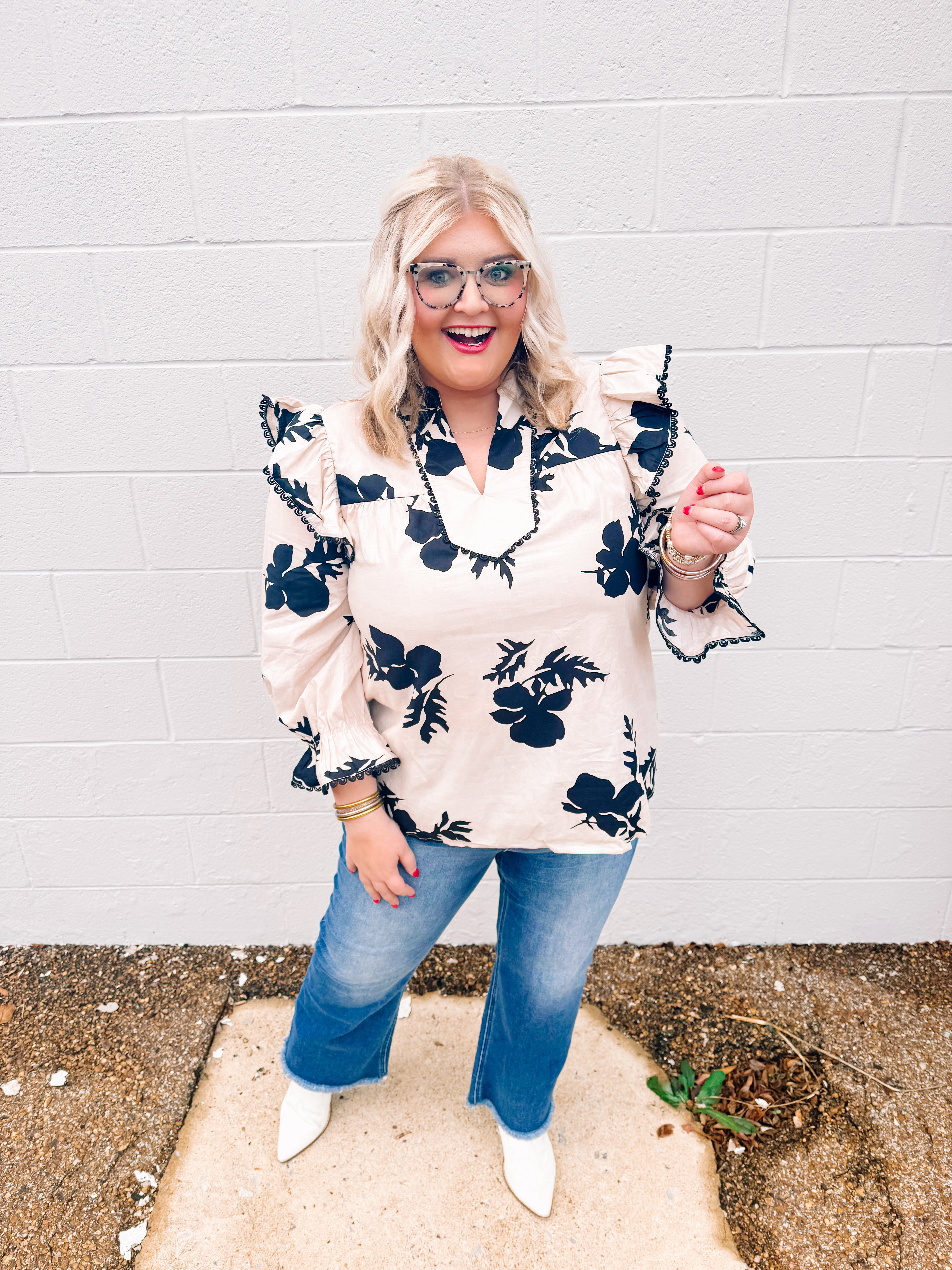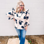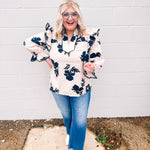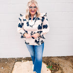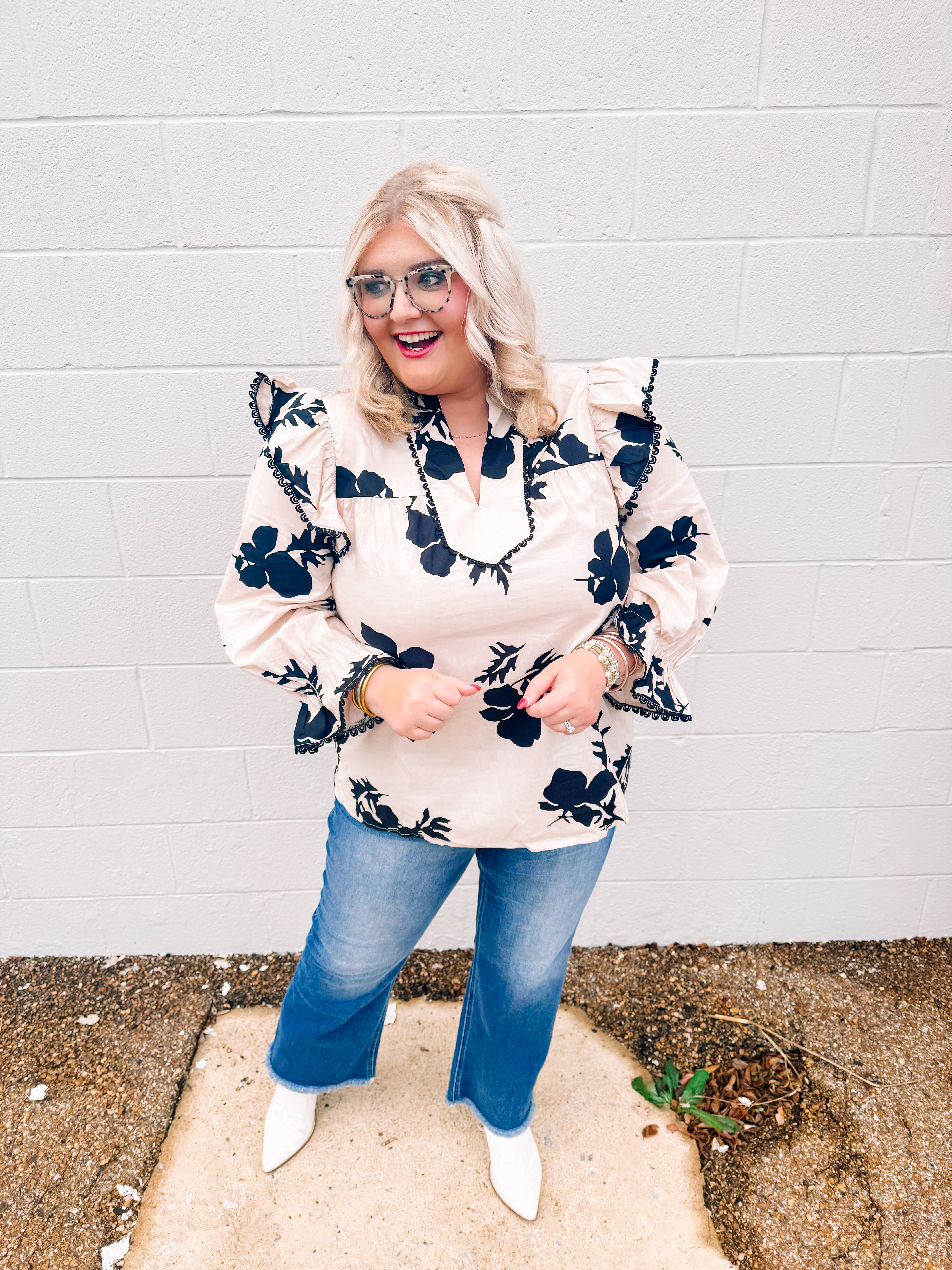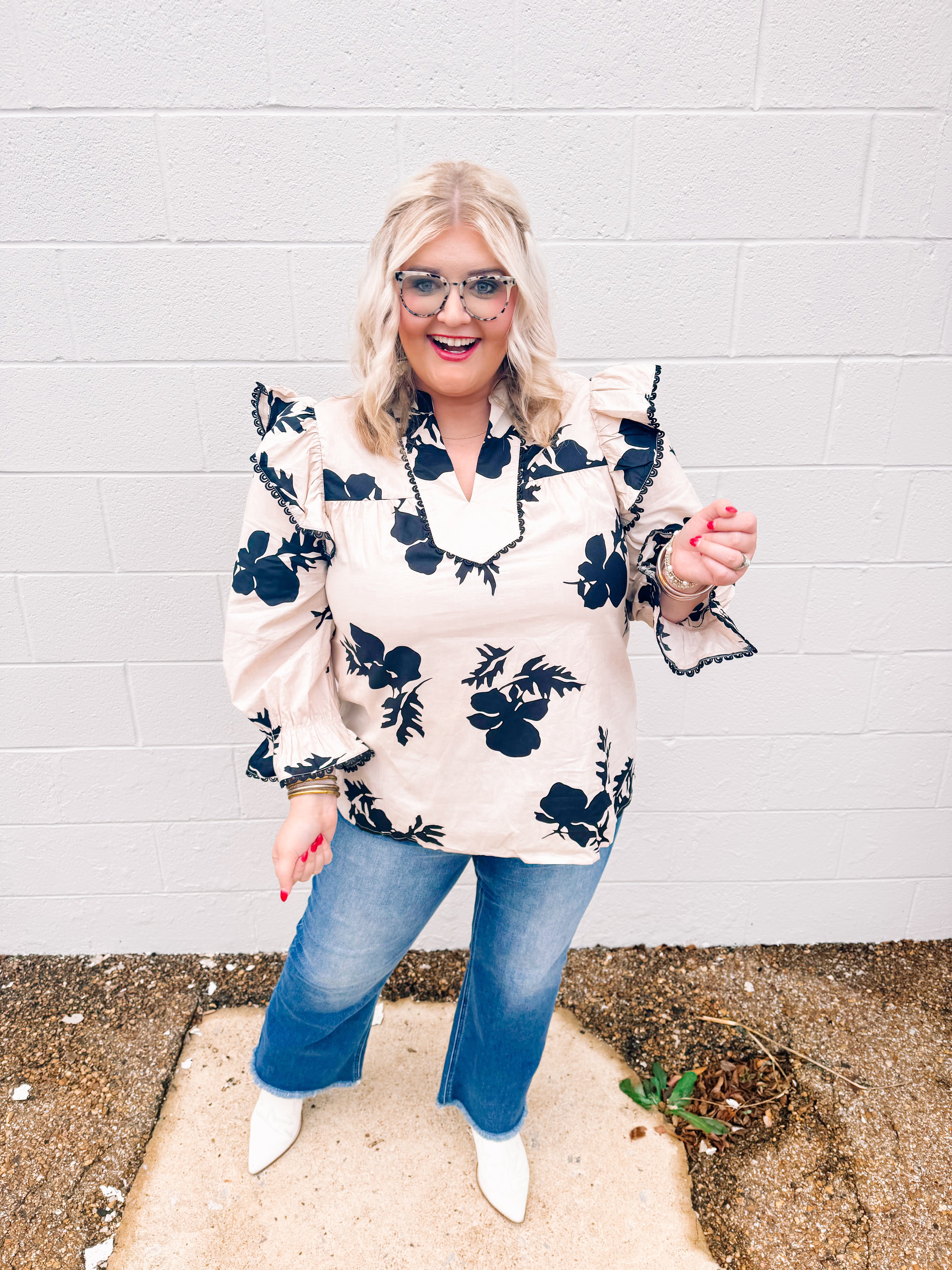 This top is a Madison's Favorite! She has this top and wears it all the time. She loves the feminine look and the flowy style. Our Favorite Floral top features, a Solid textured round neck bubble sleeve top featuring smocking and stitching detail. Button closure at back. Elastic at cuff. Unlined. Woven. Non-sheer. Lightweight.