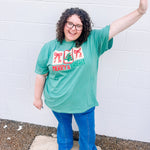 This oversized green comfort tee features a charming needlepoint-inspired design with delicate bows and the festive phrase "Merry and Bright." Crafted for all-day wear, its relaxed fit combines cozy softness with a stylish holiday touch, making it perfect for casual seasonal celebrations.