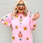 • Pink Cotton terry sweatshirt material featuring nutcracker motif