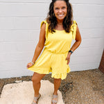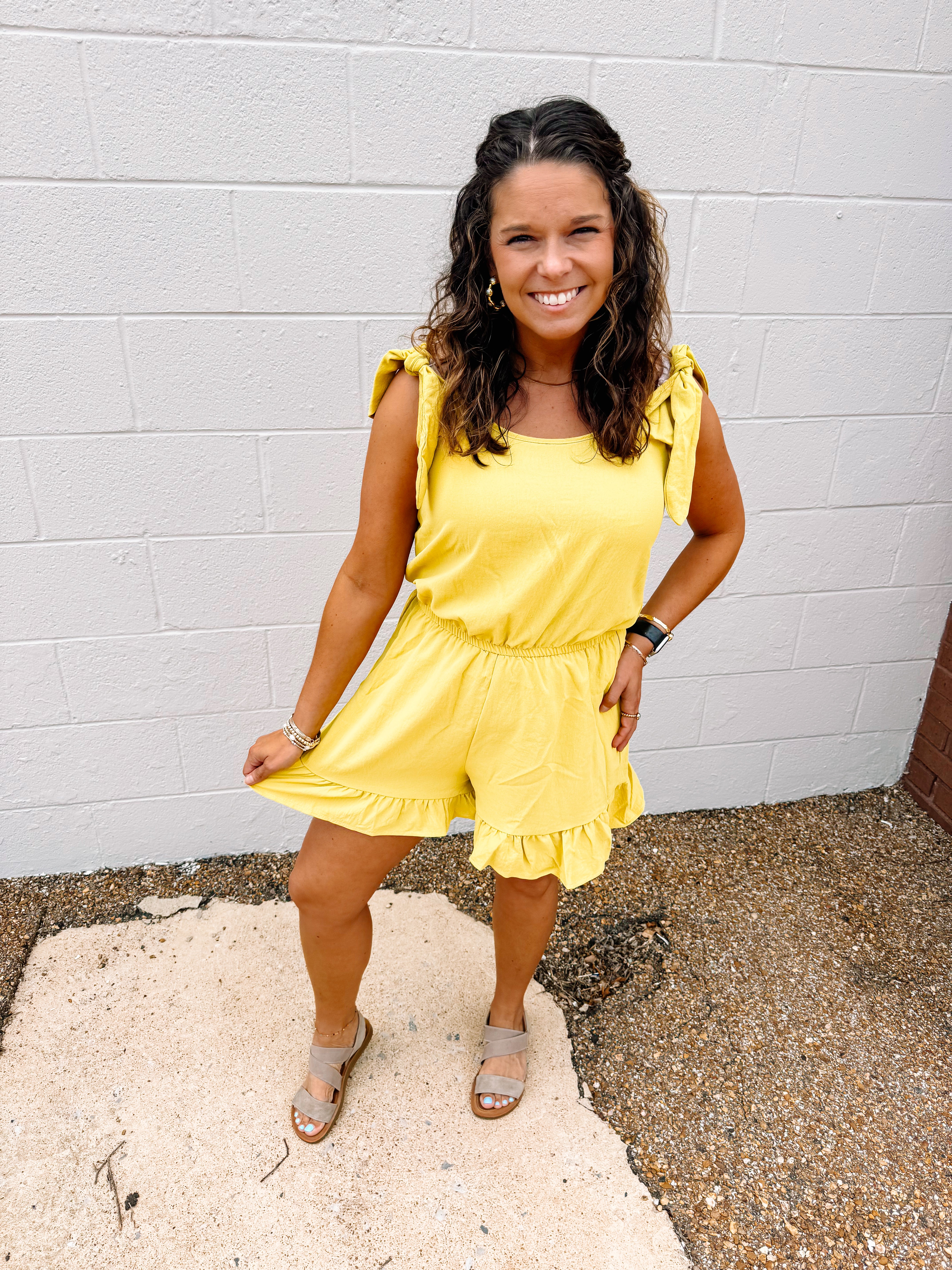Christmas in June Door Buster! This romper is only 19.99! She come in 2 colors blue bell and citrus! Great for the summer months.