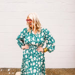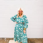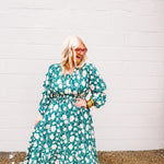 The Oddi Teal Floral Maxi Dress combines elegant design with comfortable wearability. Featuring a floral print on rich teal fabric, it includes a smocked waist that flatters your silhouette and a tiered hem adding graceful movement. The gathered long sleeves provide a refined finish suitable for various occasions, making this dress a versatile and sophisticated addition to your wardrobe.