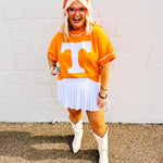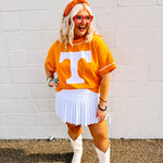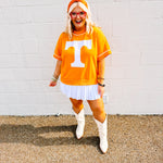 Bring team spirit and street style together with this ultra-comfy, oversized sweatshirt. Designed with a relaxed, drop-shoulder fit and short sleeves for all-season wear, this sweatshirt features bold front flocked lettering that adds a vintage-inspired texture and standout graphic appeal. Whether you're cheering from the stands or kicking back with friends, this piece delivers effortless game day energy with a cozy, broken-in feel.