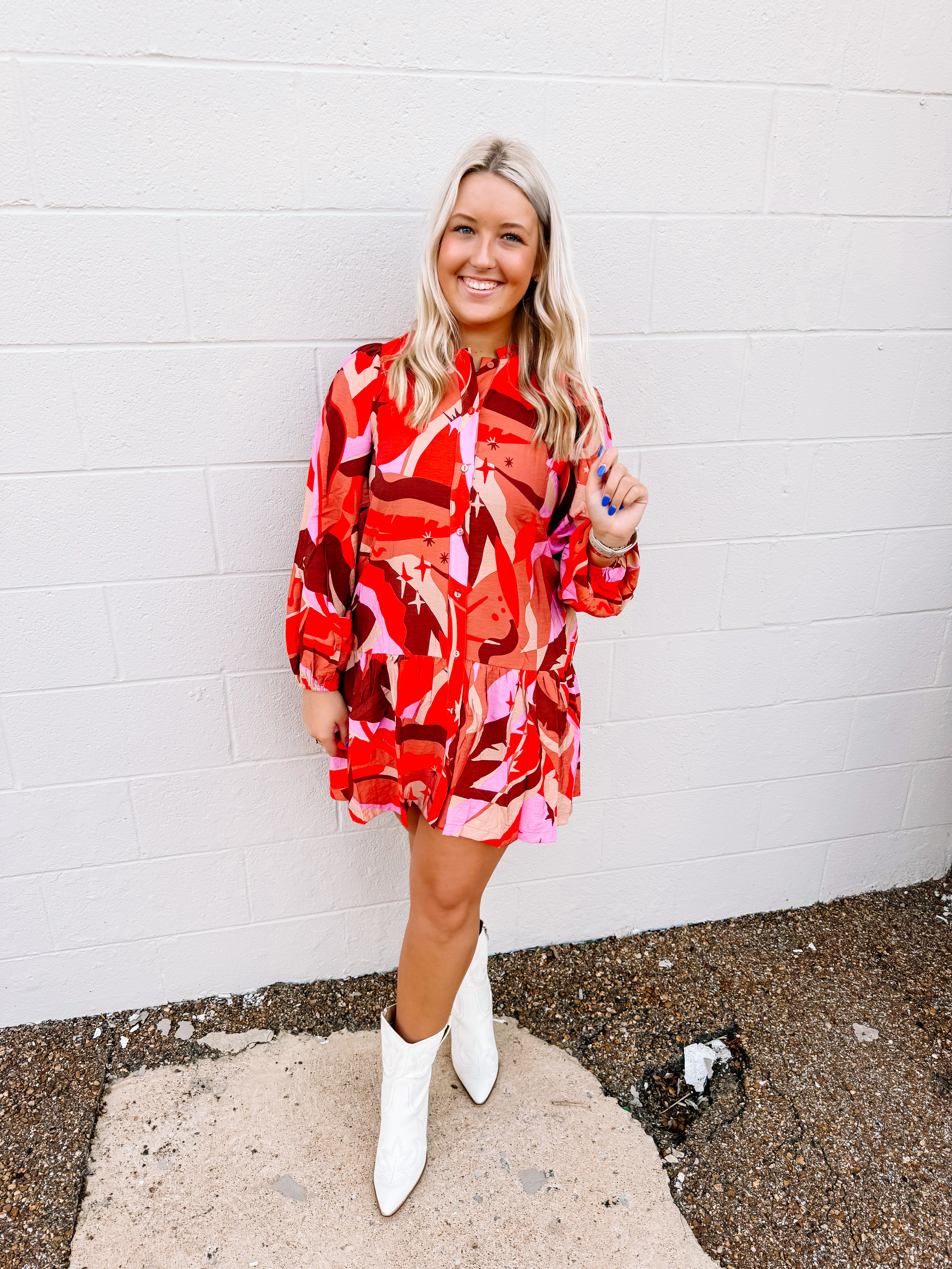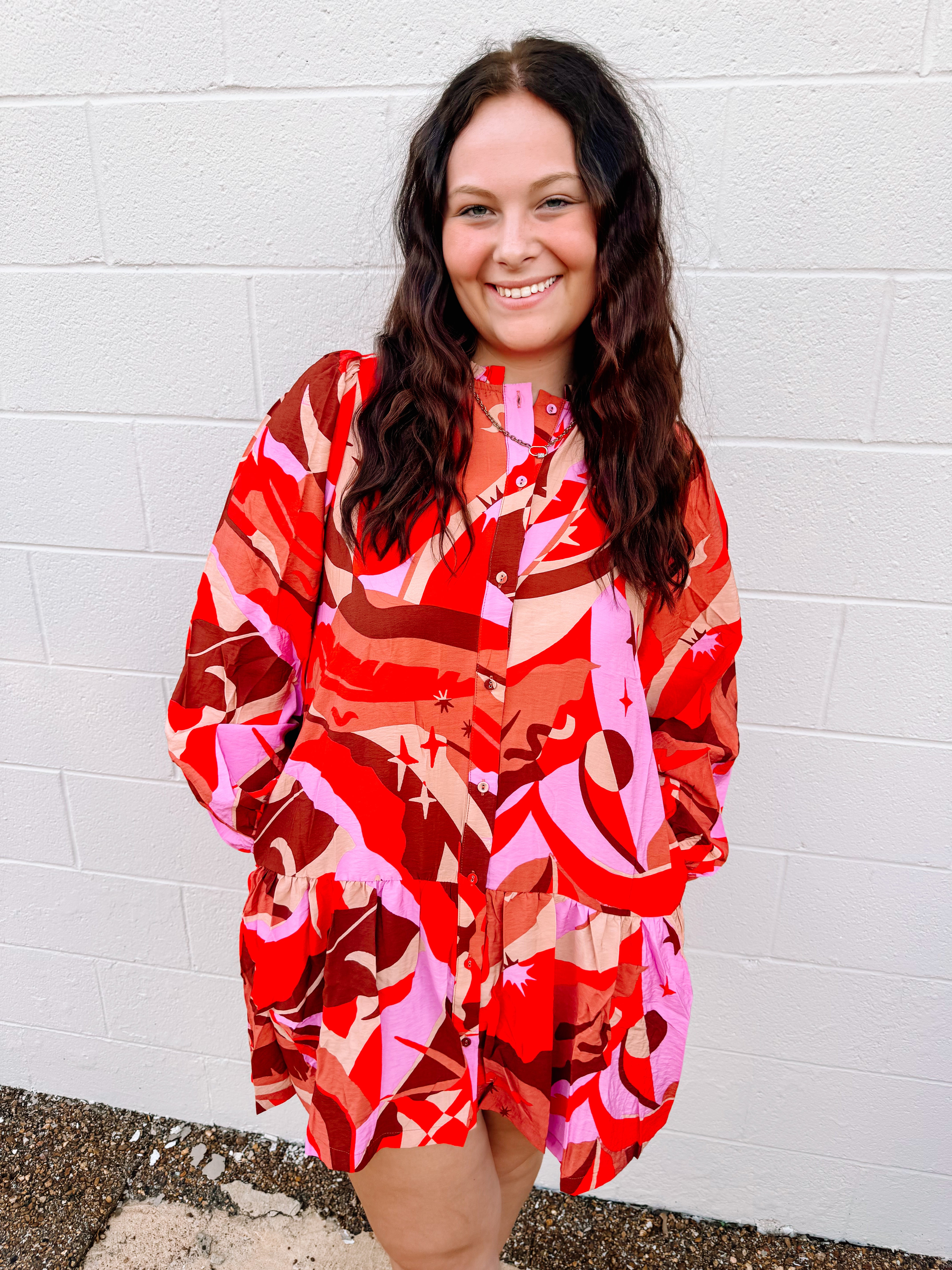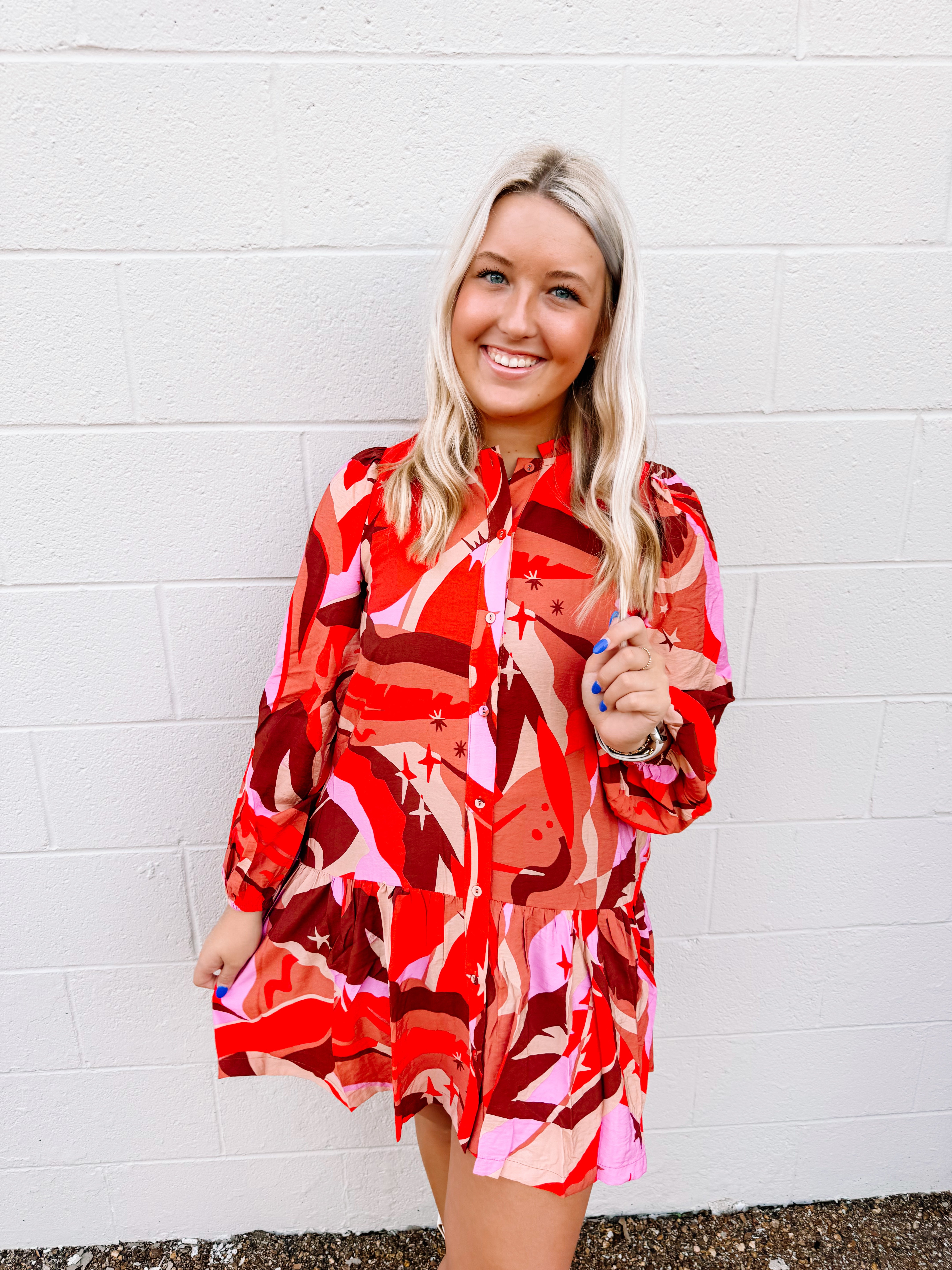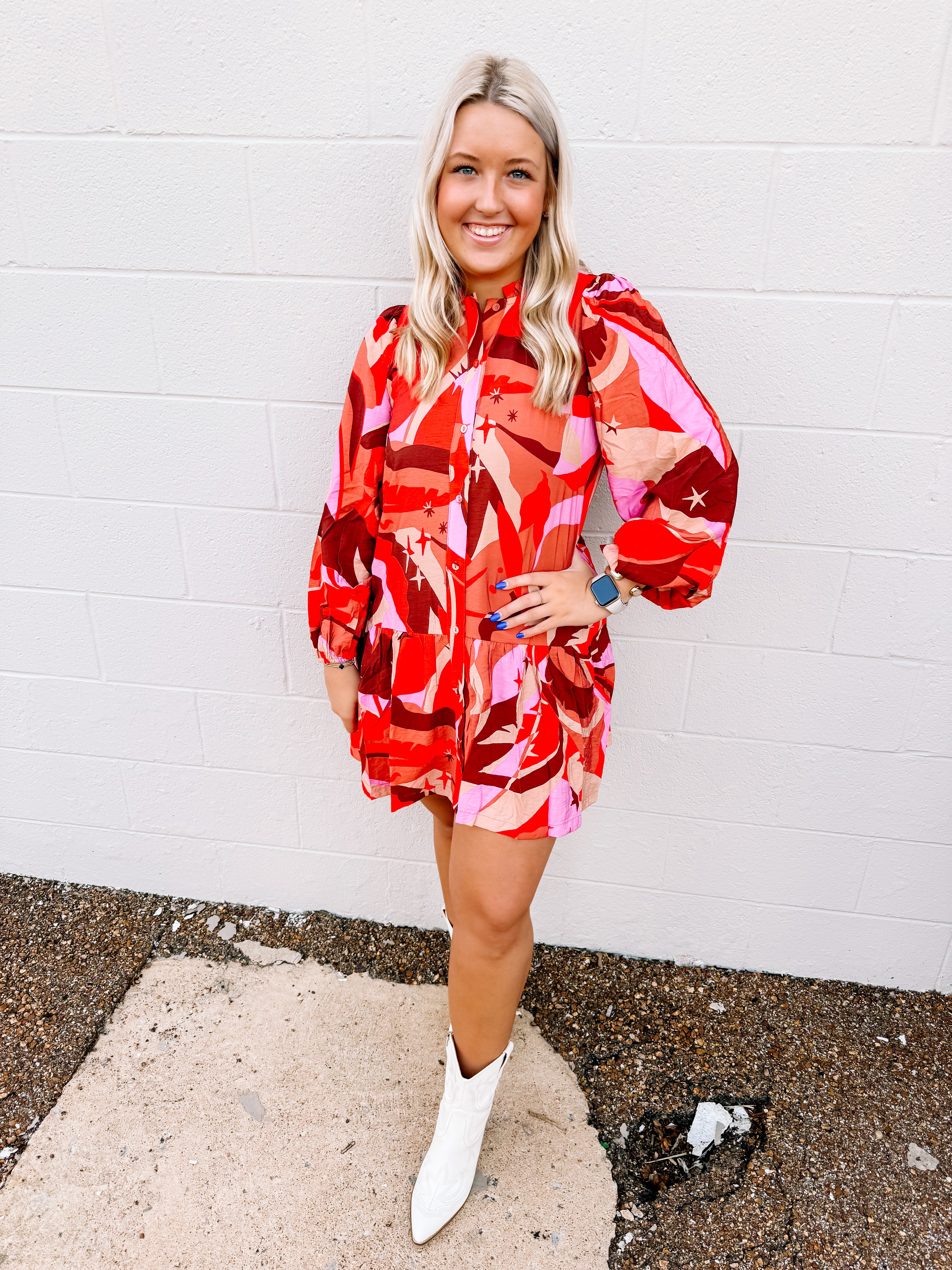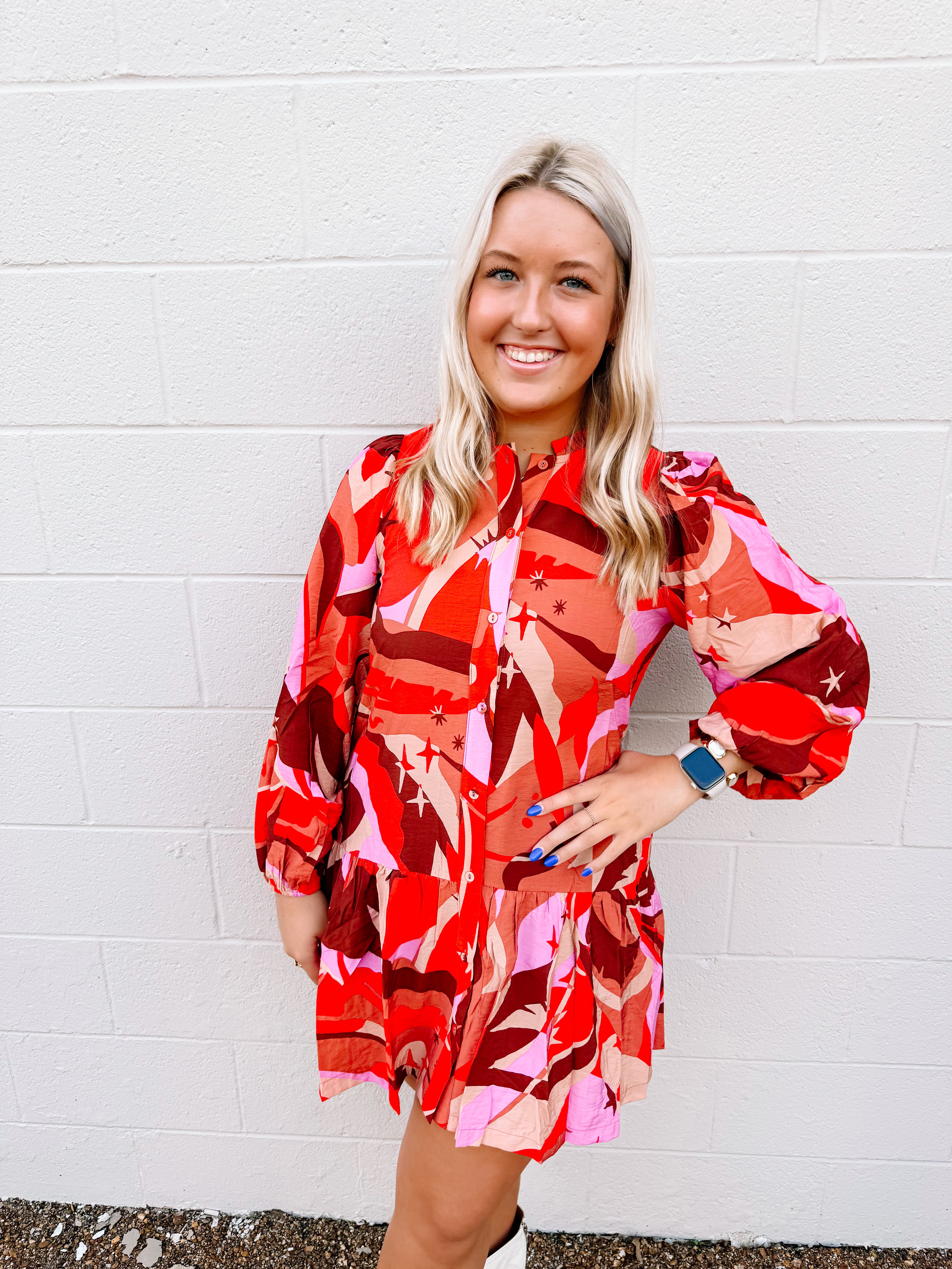 This dress is so cute and different! Talk about a dres that has a cute fit and is for all sizes! These beautiful button detailing with the bottom floral give this dress just enough femininity to complete the look.