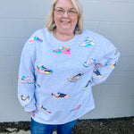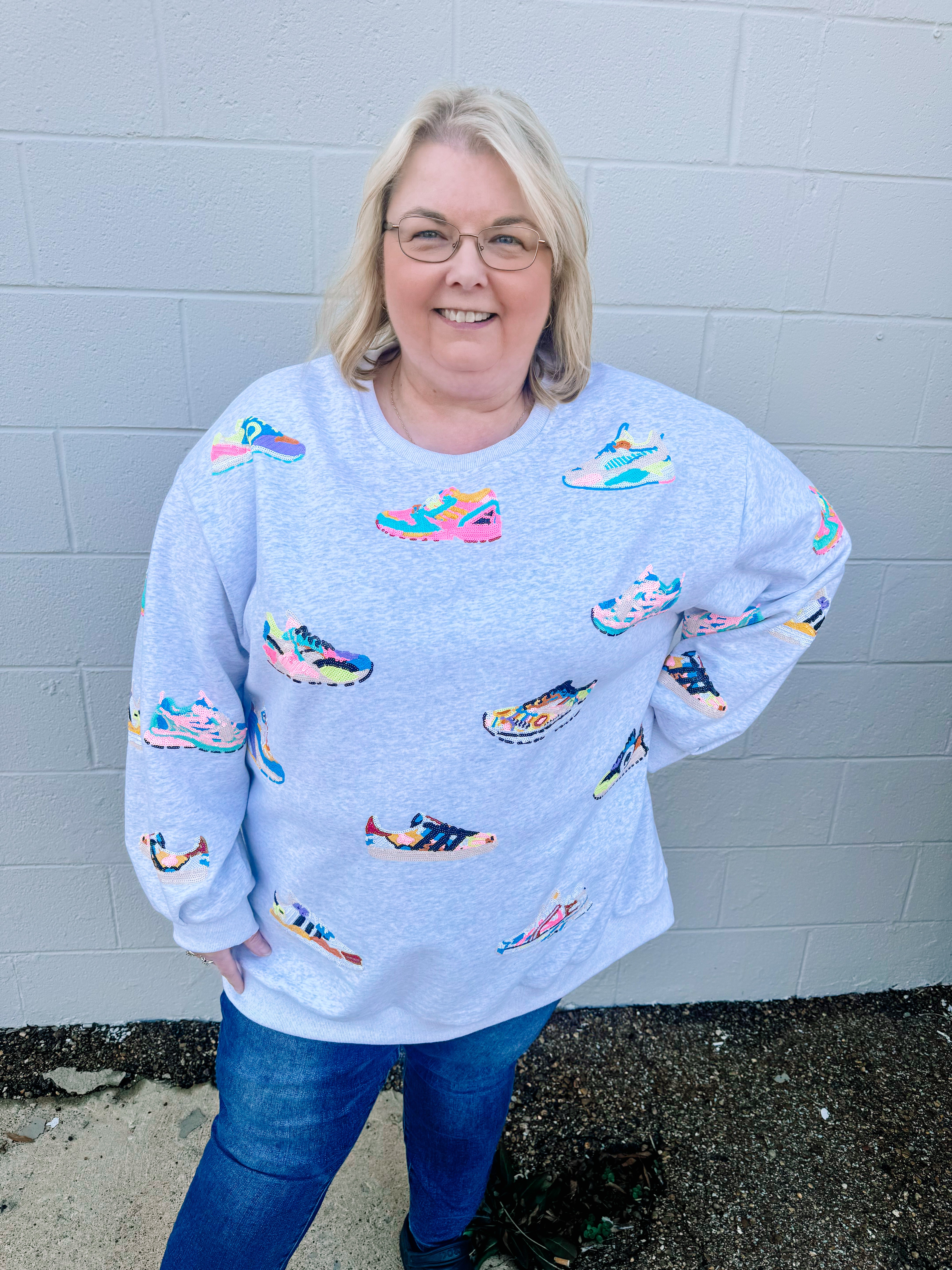 Elevate your style with our Grey Neon Sneaker Sweatshirt! This comfy sweatshirt features eye-catching neon sequin sneaker designs and a banded bottom for a trendy look. Look effortlessly stylish and feel comfortable all day long with this sweatshirt!