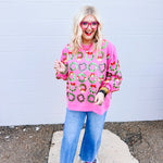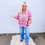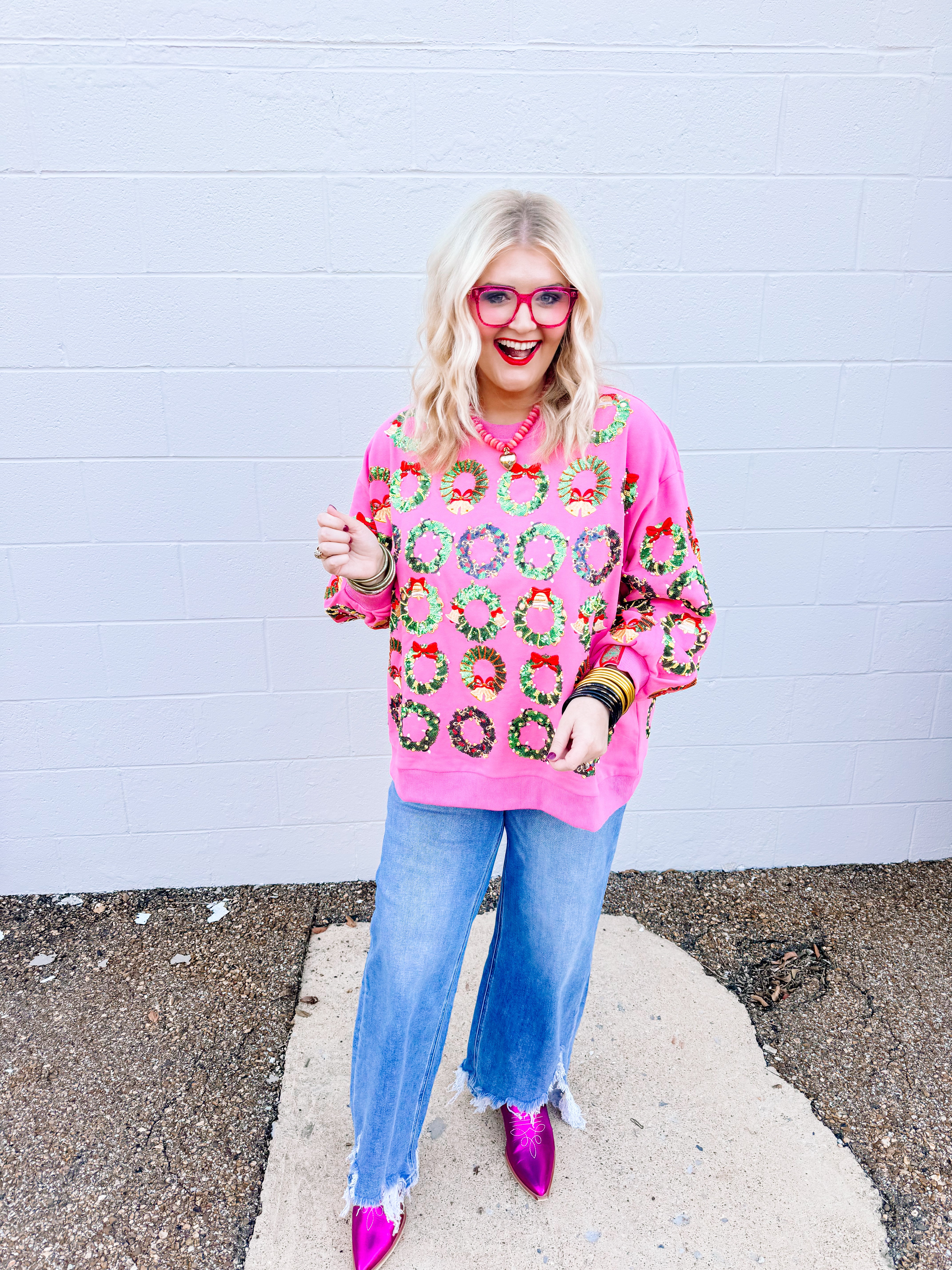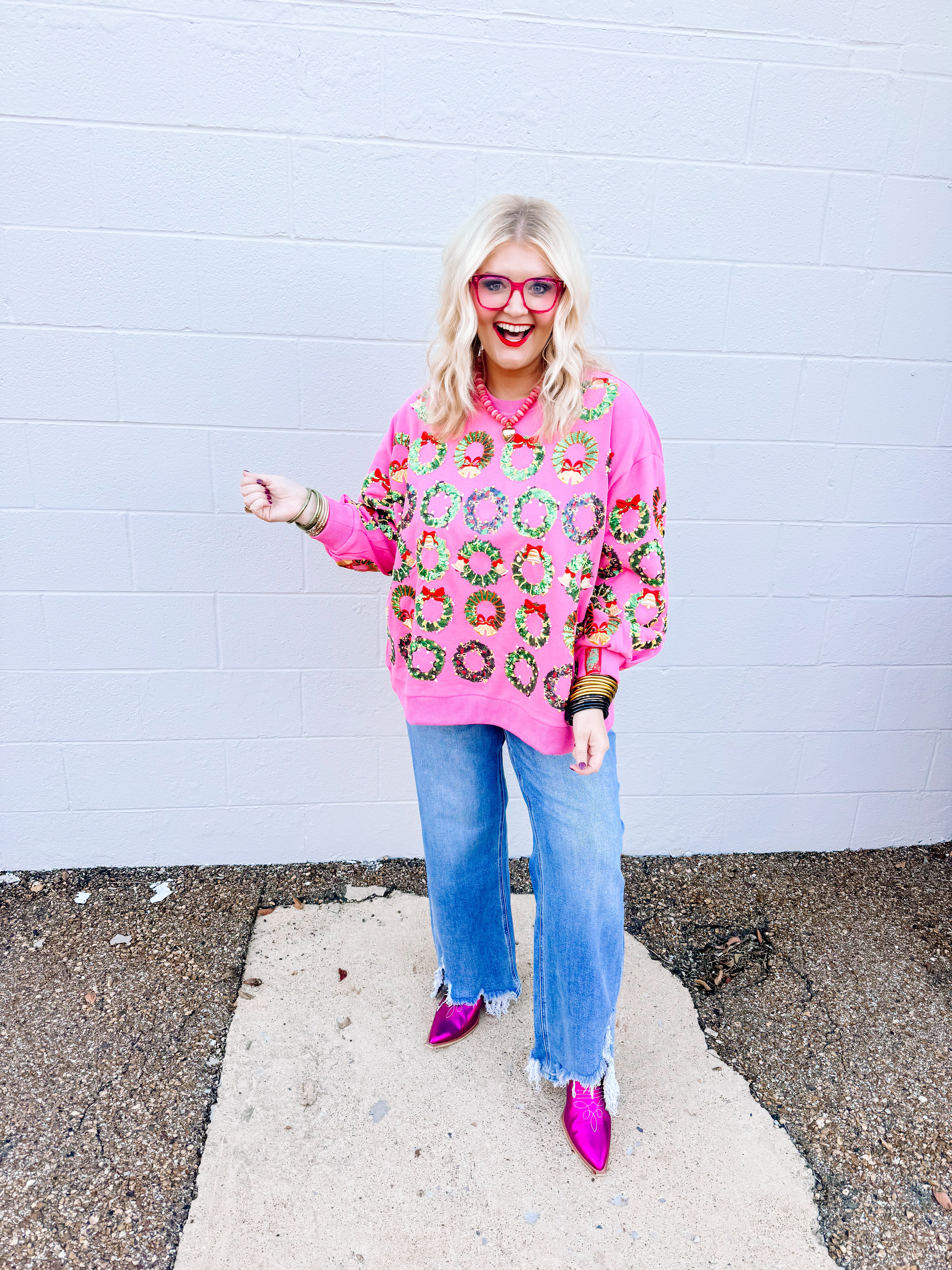 Stay cozy and stylish with this hot pink sweatshirt featuring adorable wreath designs on both front and back! Its vibrant color and cute pattern make it perfect for brightening up any day. Pair it with the matching shorts for a fun, coordinated look that’s ready for lounging or casual outings.