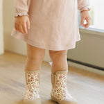 Rylee + Cru Rain Boots in Bloom combine playful floral design with durable waterproof construction, perfect for keeping children’s feet dry during rainy days. Crafted with sturdy materials and a non-slip sole, these boots provide reliable traction and comfort for active kids. Their easy pull-on style ensures quick wear, making them an essential choice for wet weather protection.
