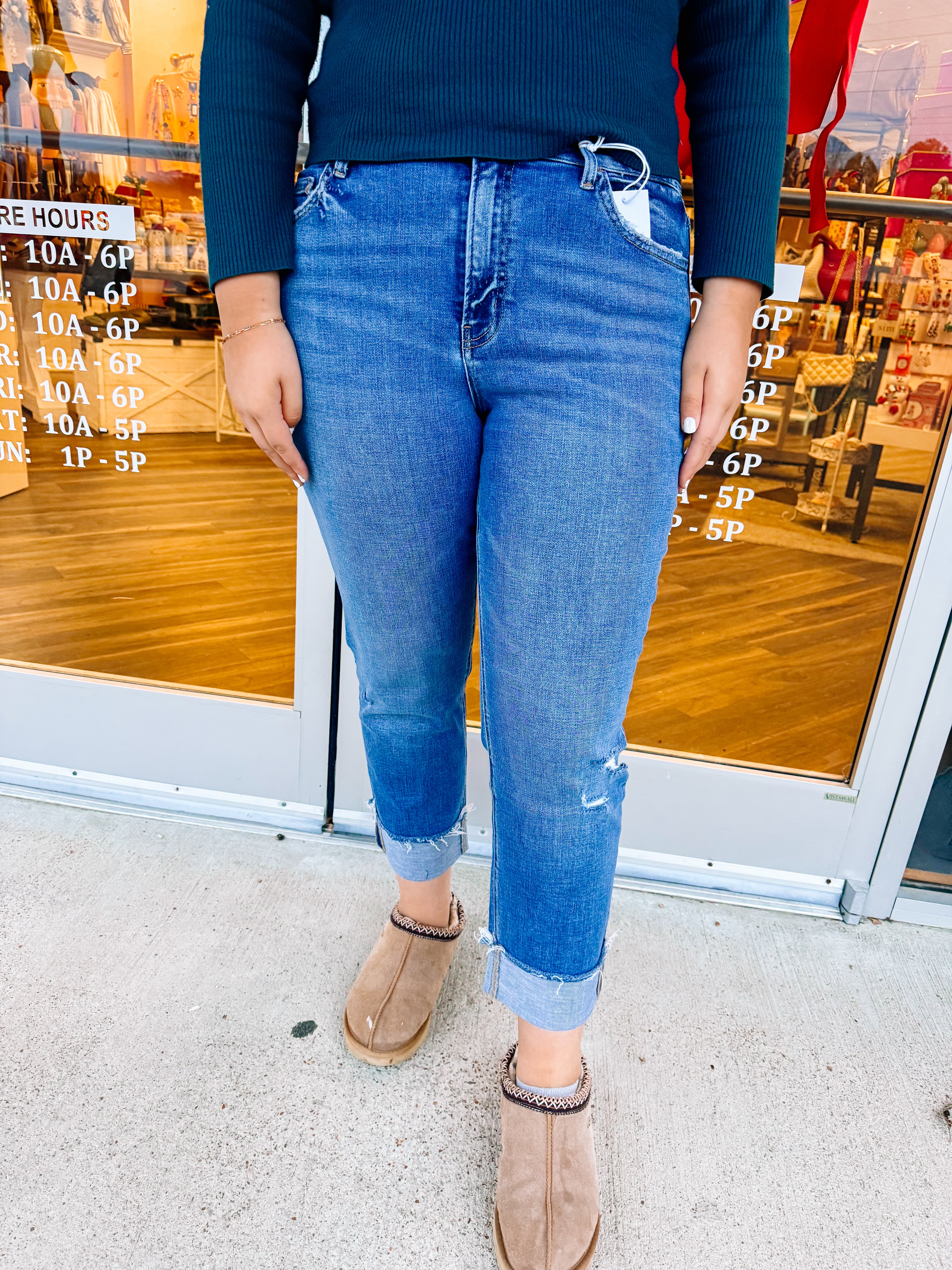 Y'all asl and we listen! We are now carrying Flying Monkey/Vervet denim in stores and online. Our first pair is a keeper! The Sensible Straight is a high rise straight style with cuffs at the bottom.