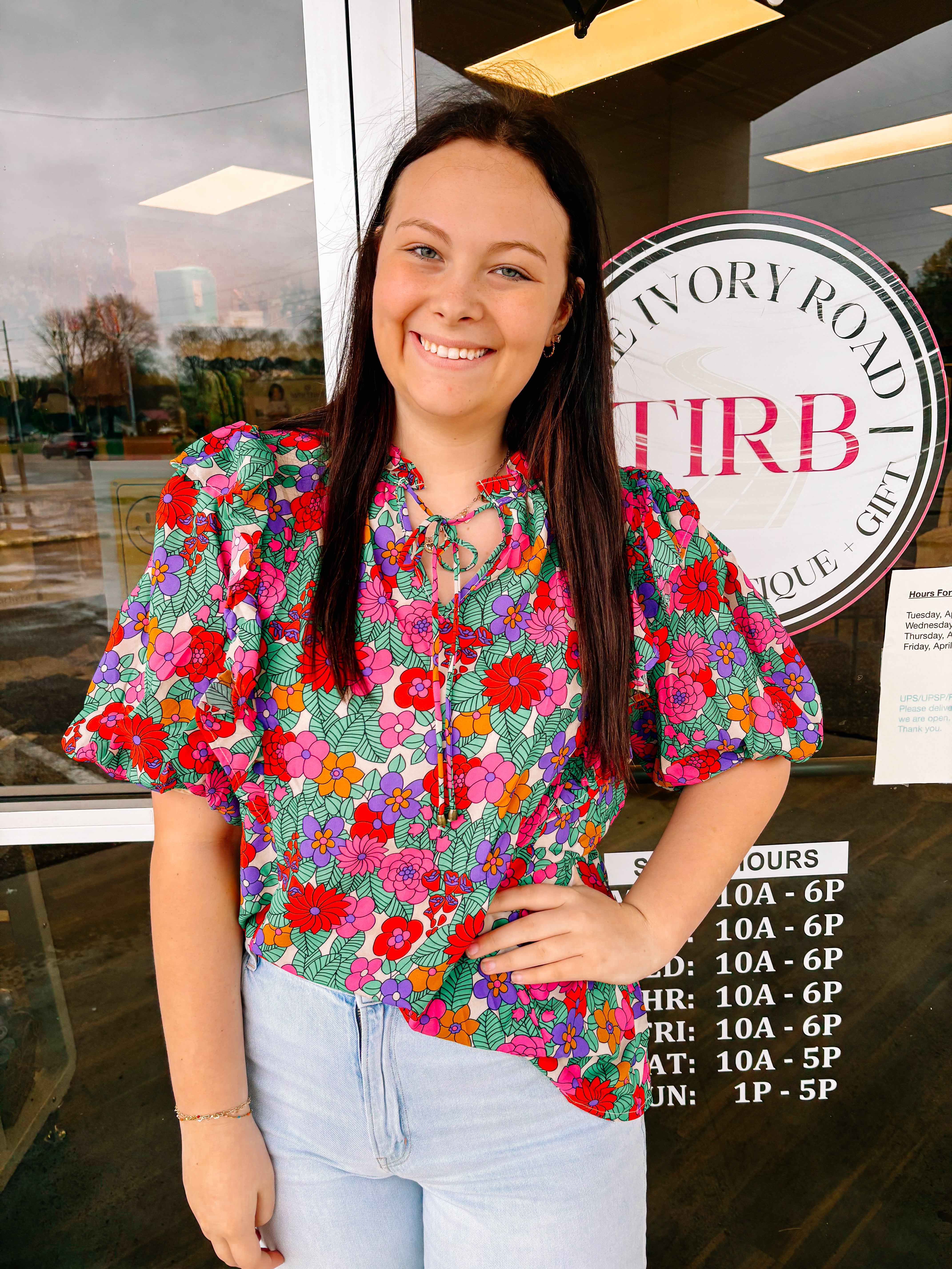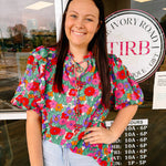 Welcome to The Adalynn Top. This pink and red floral top is great for the curvy girls this Spring and Summer. This shirt pairs well with our YMI Jeans.