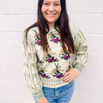 A beautiful sweater that is perfect for the Holidays but is also a great piece to wear all Winter season. The coloring and the dainty bow design is so femine and pretty. Our "Under the Mistletoe Sweater" is featuring, a