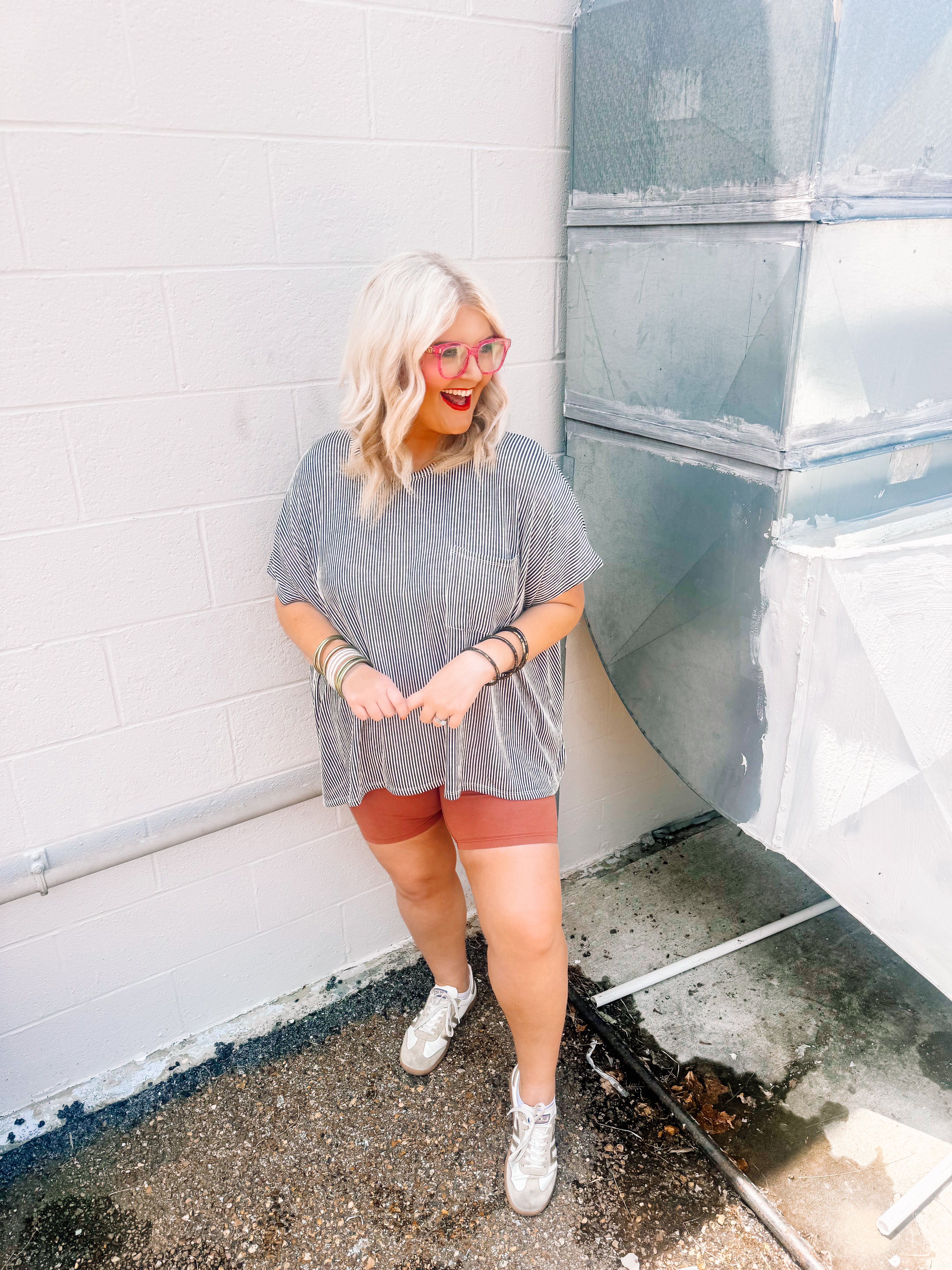 Stay cool and stylish with the Zenana Beat the Heat Top in Black. Featuring a breathable ribbed fabric with white and black stripes, this flowy top offers comfort and effortless elegance. The practical pocket adds a subtle functional detail, making it perfect for warm days when you want both ease and a polished look. Ideal for casual outings or layering, this top combines relaxed fit with expert design for everyday wear.