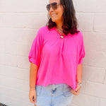 The Zenana Cool Breeze Blouse in Hot Pink features a flattering V-neckline and elegant balloon sleeves that add volume without sacrificing comfort. Crafted from lightweight, flowy fabric, this blouse offers breathable wear ideal for warm days or layering. Its relaxed silhouette ensures ease of movement while maintaining a polished, sophisticated look suitable for both casual and professional settings.